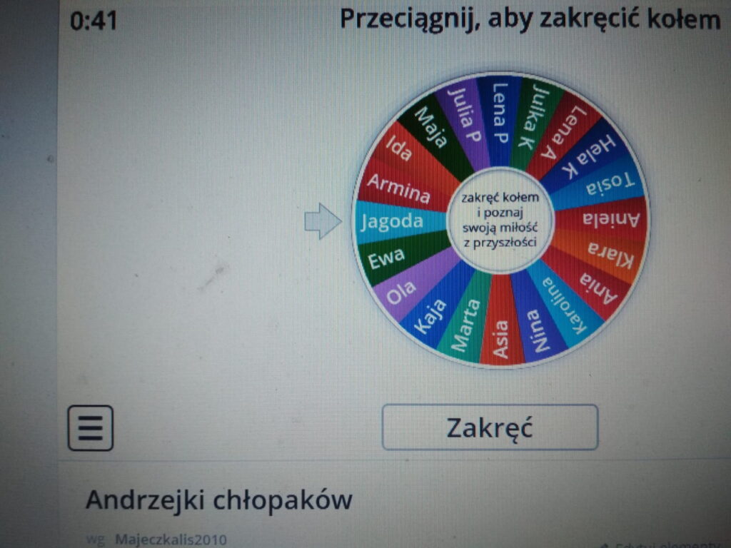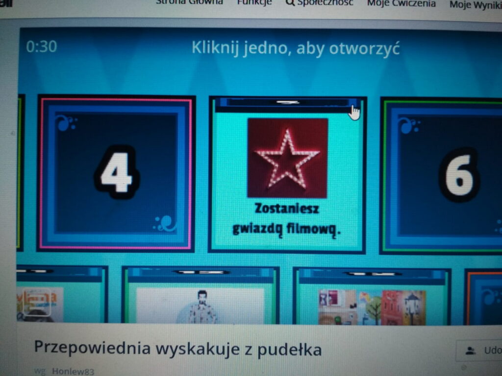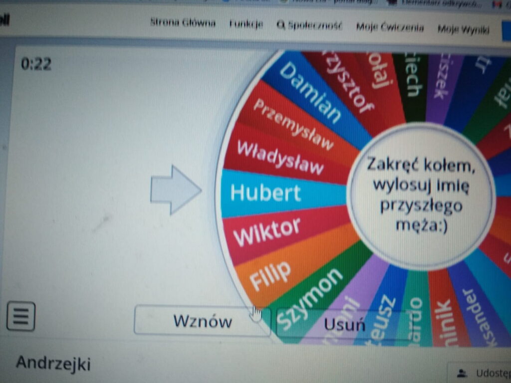 Wspólną zabawę rozpoczęliśmy na zajęciach informatycznych, gdzie zabawy komputerowe pozwoliły ,,wywróżyć” uczestnikom imię przyszłego oblubieńca lub oblubienicy. Ponadto dzieci wybierając odpowiednią kartę dowiedziały się, gdzie mogą zamieszkać w przyszłości, co ich czeka za jakiś czas i kim zostaną.