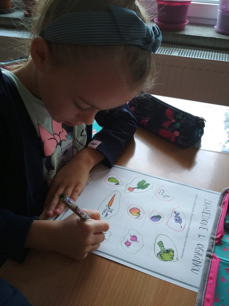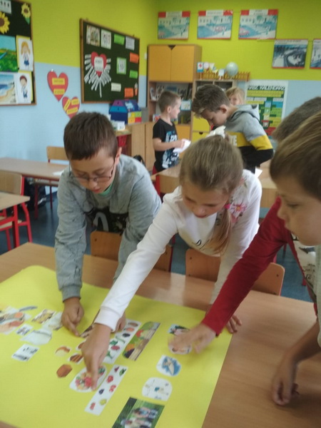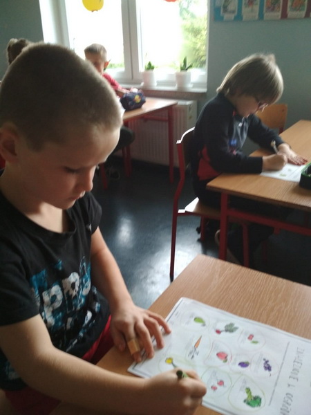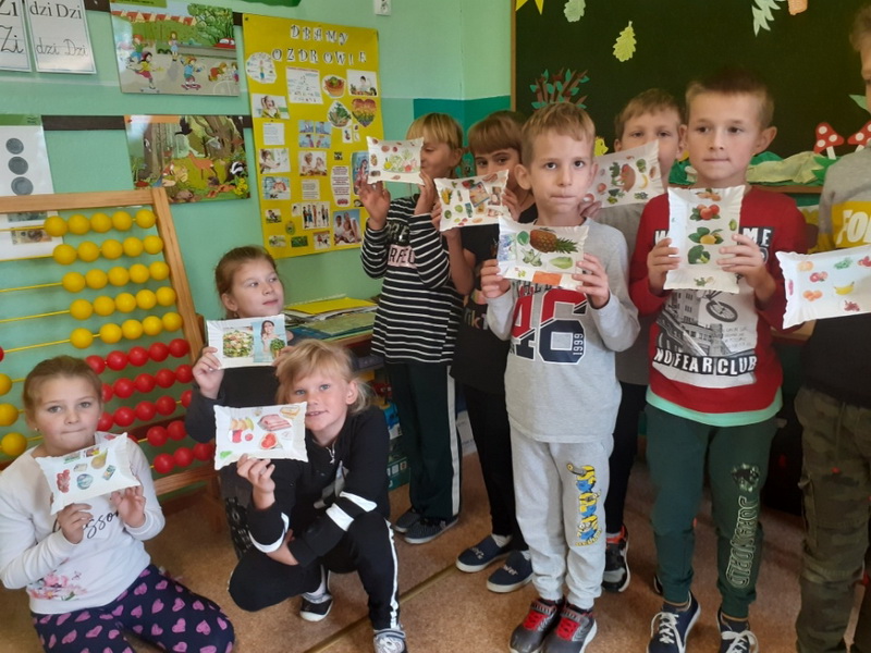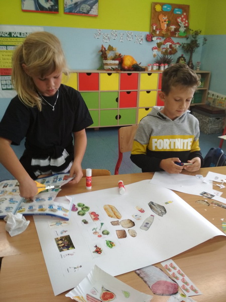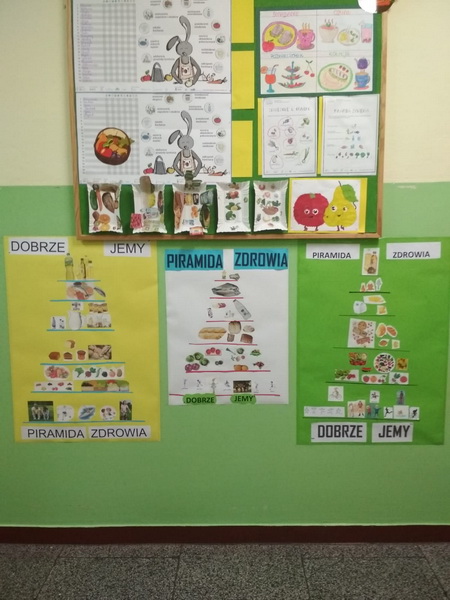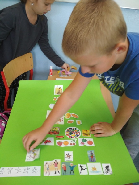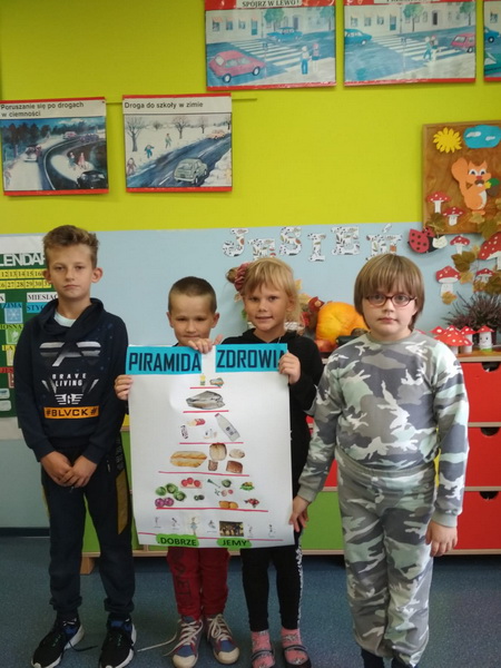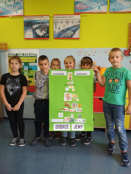 We wrześniu uczniowie realizowali temat ,,DLACZEGO JEDZENIE JEST WAŻNE?”. Podczas zajęć dzieci poznały zasady ,,Jak dobrze jeść by dobrze żyć?”. Ponadto rozwiązywali  zagadki o wybranych owocach i warzywach, wypełniali karty pracy, pogłębiali swą wiedzę  o piramidzie zdrowia w oparciu  o film edukacyjny. Kolejnymi działaniami było wykonanie na papierowych talerzykach kompozycji zdrowego posiłku. Pracując w grupach wykonali własne piramidy zdrowia, które zawiesili na korytarzu szkolnym. Ostatnim z zadań było udokumentowanie w postaci rysunku wszystkich zjedzonych w ciągu dnia zdrowych posiłków i omówienie co należałoby ewentualnie zmienić.