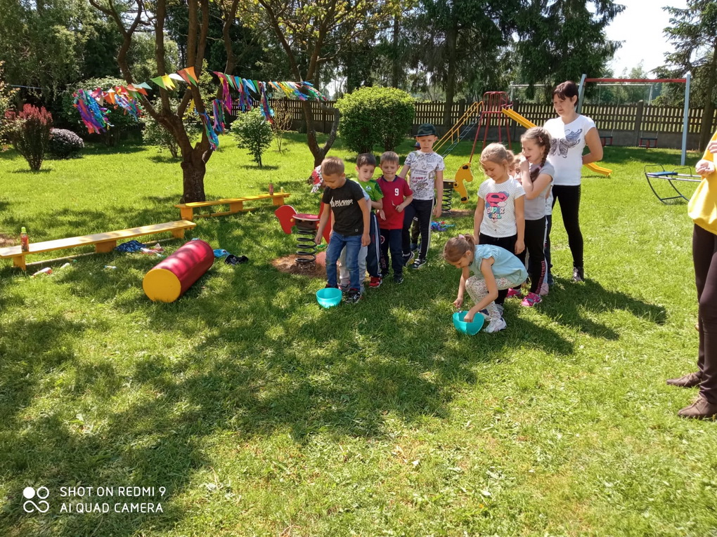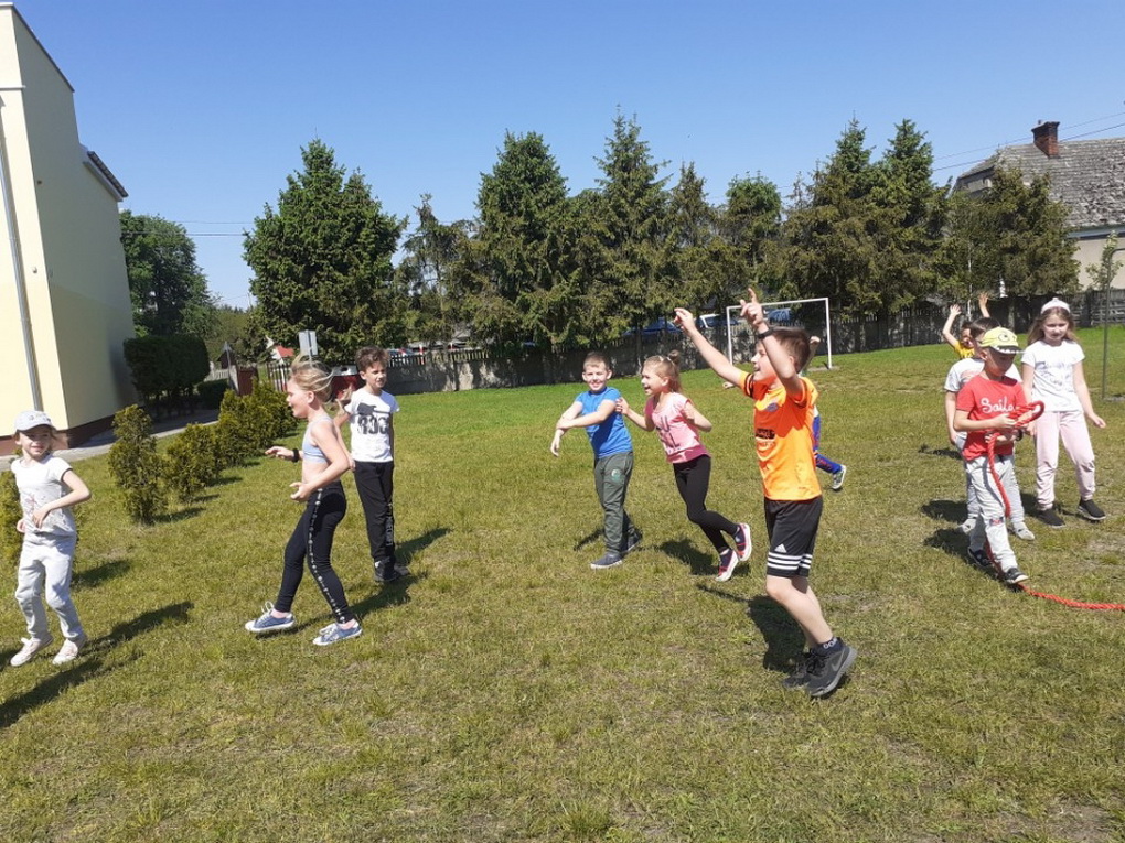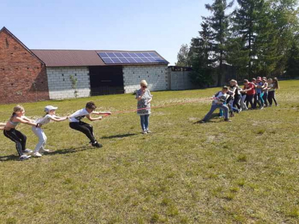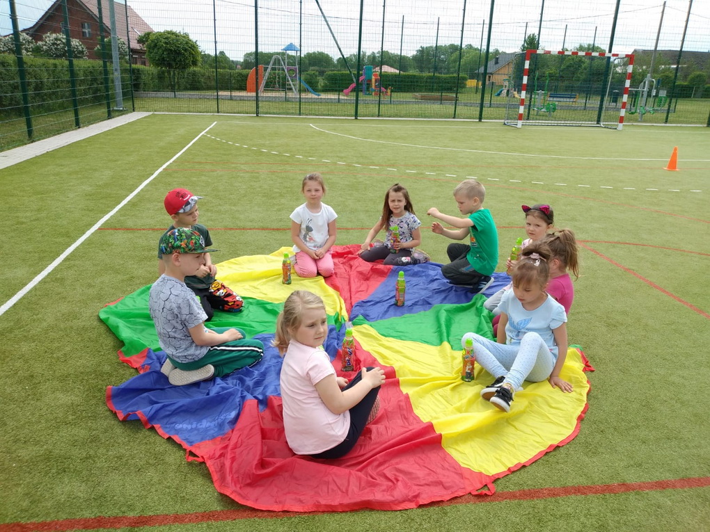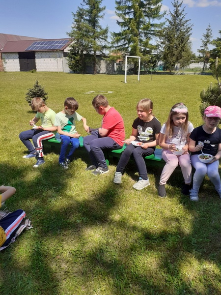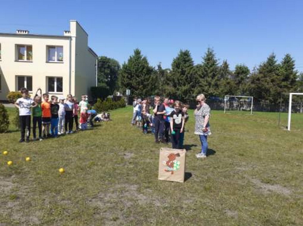 Dzień Dziecka i Sportu, obchodzony w naszej szkole wyjątkowo 02. czerwca, rozpoczął się dla uczniów klas 1-3 uroczystym apelem, w którym towarzyszyła nam Pani Dyrektor A. Wilczura. Przedstawiliśmy dzieciom krótką informację na temat Międzynarodowego Dnia Dziecka i wychowawczynie klas: I. Winiecka, E. Kuświk , R. Gąbka zaśpiewały Wszystkim zebranym dzieciom sto-lat i złożyły życzenia. Po apelu zaczął się dzień na wesoło. Wspólnie przygotowywaliśmy sałatkę owocową, został przeprowadzony konkurs na najciekawsze przebranie baśniowe, odbył się szereg zabaw i konkurencji sportowych a na zakończenie biesiadowaliśmy przy słodkim poczęstunku. Zabawy i konkurencje sportowe cieszyły się dużym zainteresowaniem dzieci, tym bardziej, że po każdej wygranej były nagradzane słodkimi prezentami. Podczas biesiady odwiedziła nas Pani K. Leśniak – przewodnicząca Rady Rodziców, która złożyła dzieciom życzenia i częstowała słodkościami. Ten dzień przyniósł Nam wiele radości i zadowolenia. Dzieci wspólnym głosem odpowiedziały nam, że Bardzo Im się Podobało. Serdecznie Dziękujemy Panu sołtysowi i radnemu A. Mielcarkowi, jak również Radzie Rodziców, za wsparcie finansowe, które przeznaczyliśmy na zakup nagród i słodkości.