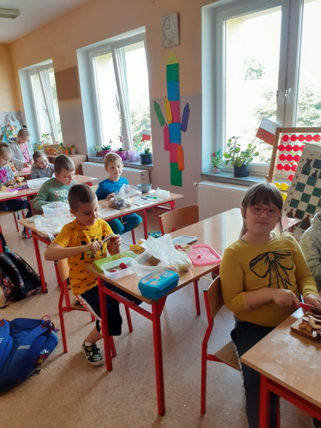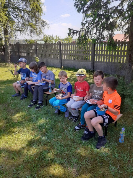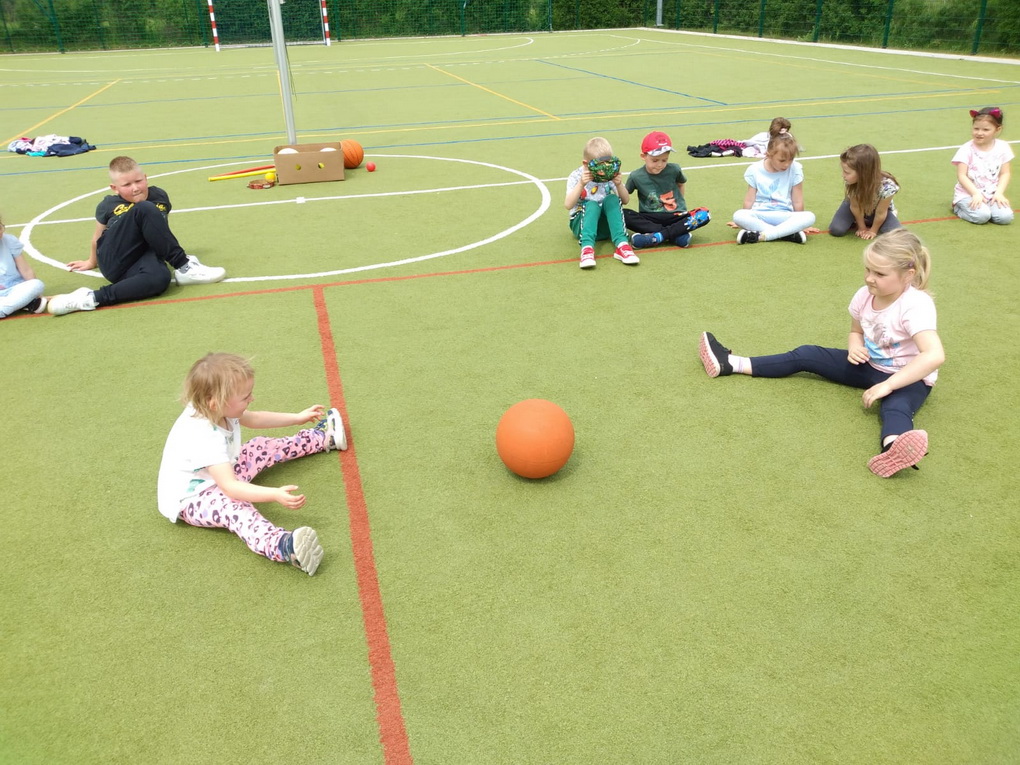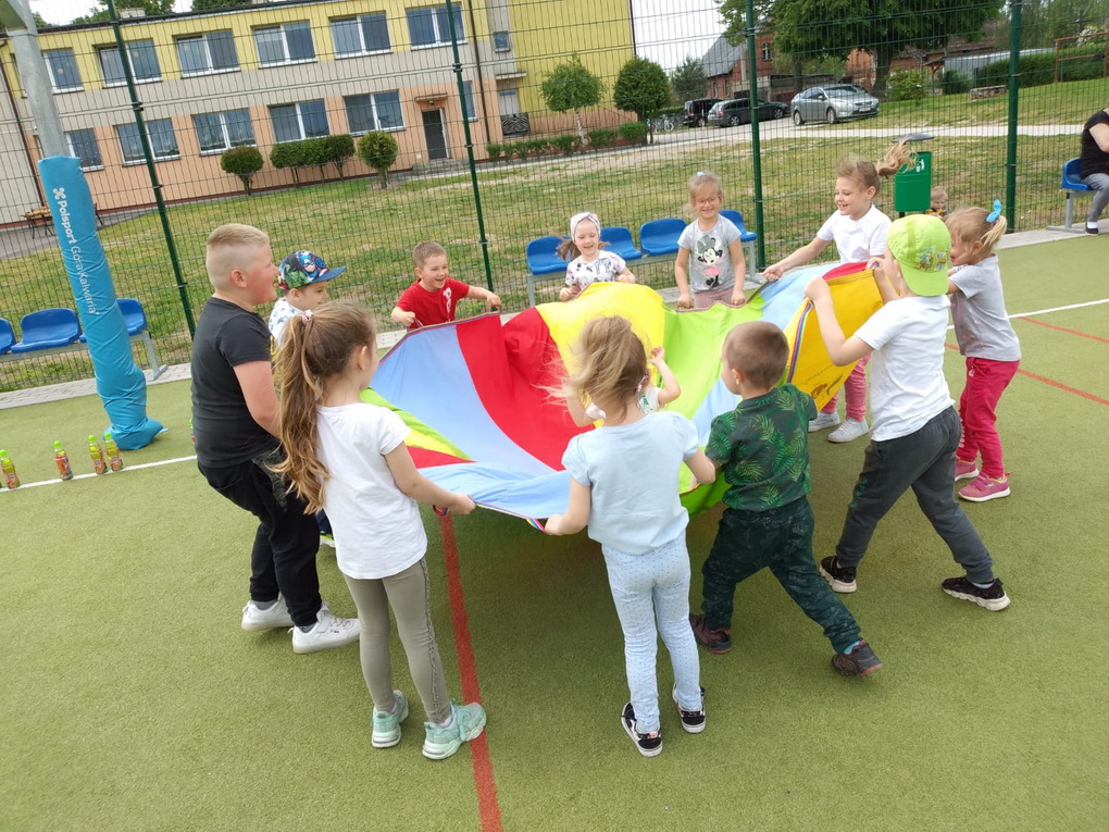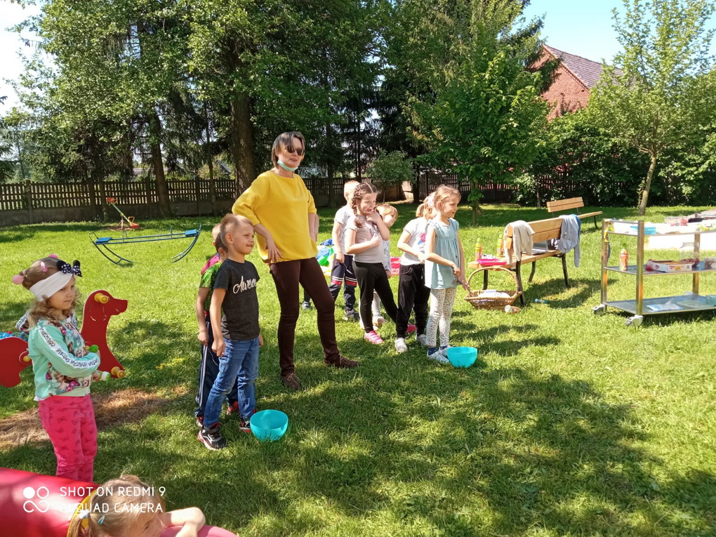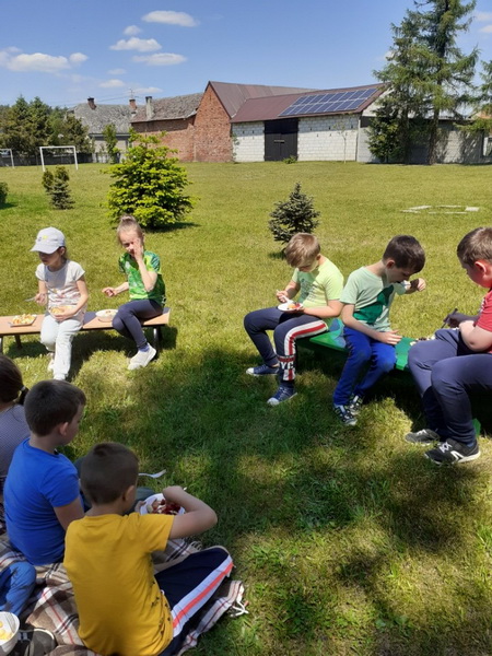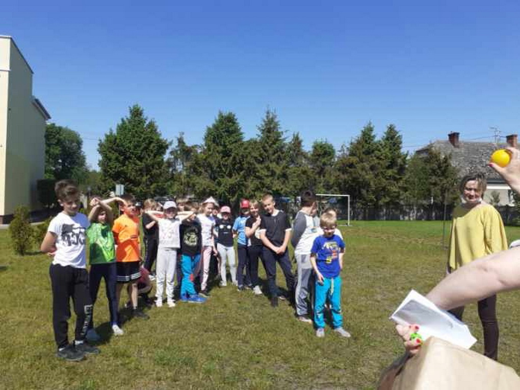 Dzień Dziecka i Sportu, obchodzony w naszej szkole wyjątkowo 02. czerwca, rozpoczął się dla uczniów klas 1-3 uroczystym apelem, w którym towarzyszyła nam Pani Dyrektor A. Wilczura. Przedstawiliśmy dzieciom krótką informację na temat Międzynarodowego Dnia Dziecka i wychowawczynie klas: I. Winiecka, E. Kuświk , R. Gąbka zaśpiewały Wszystkim zebranym dzieciom sto-lat i złożyły życzenia. Po apelu zaczął się dzień na wesoło. Wspólnie przygotowywaliśmy sałatkę owocową, został przeprowadzony konkurs na najciekawsze przebranie baśniowe, odbył się szereg zabaw i konkurencji sportowych a na zakończenie biesiadowaliśmy przy słodkim poczęstunku. Zabawy i konkurencje sportowe cieszyły się dużym zainteresowaniem dzieci, tym bardziej, że po każdej wygranej były nagradzane słodkimi prezentami. Podczas biesiady odwiedziła nas Pani K. Leśniak – przewodnicząca Rady Rodziców, która złożyła dzieciom życzenia i częstowała słodkościami. Ten dzień przyniósł Nam wiele radości i zadowolenia. Dzieci wspólnym głosem odpowiedziały nam, że Bardzo Im się Podobało. Serdecznie Dziękujemy Panu sołtysowi i radnemu A. Mielcarkowi, jak również Radzie Rodziców, za wsparcie finansowe, które przeznaczyliśmy na zakup nagród i słodkości.