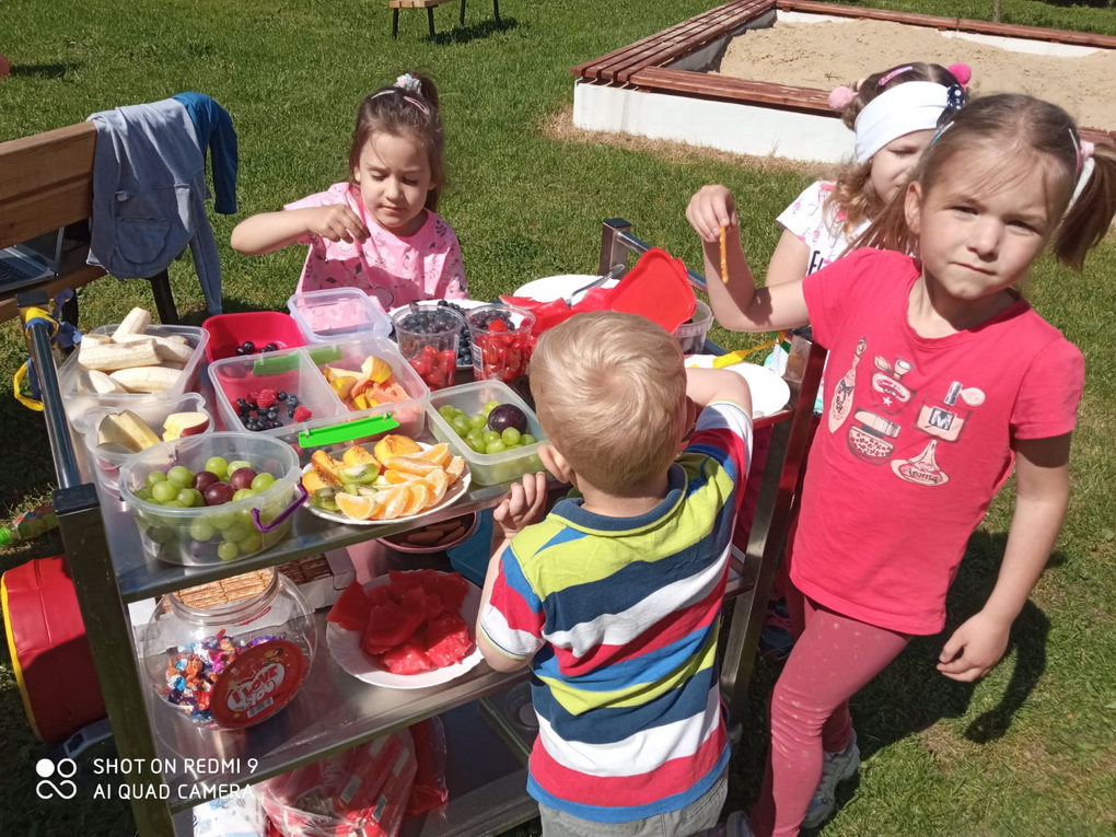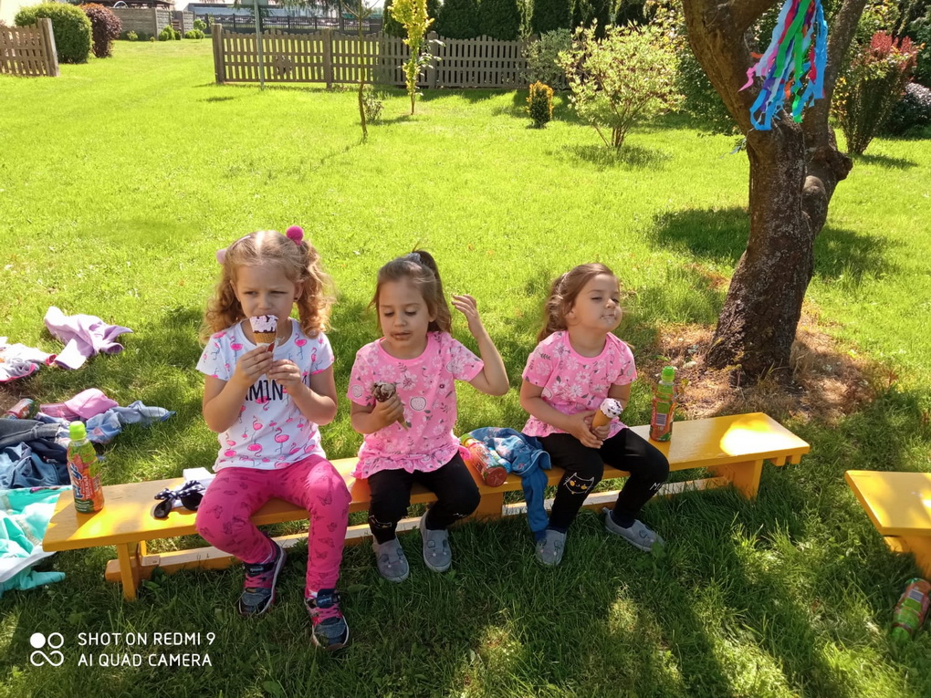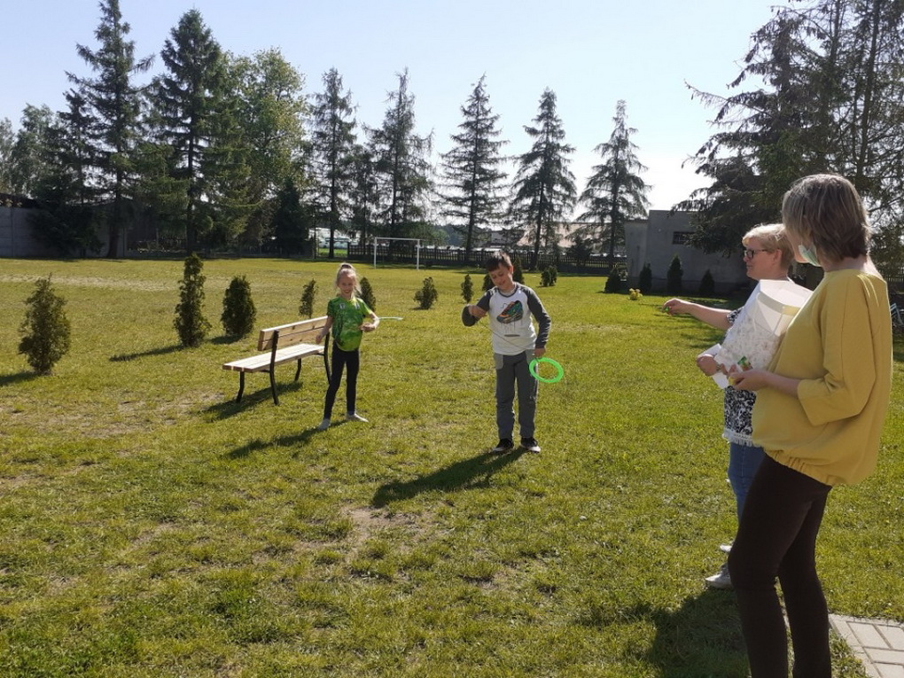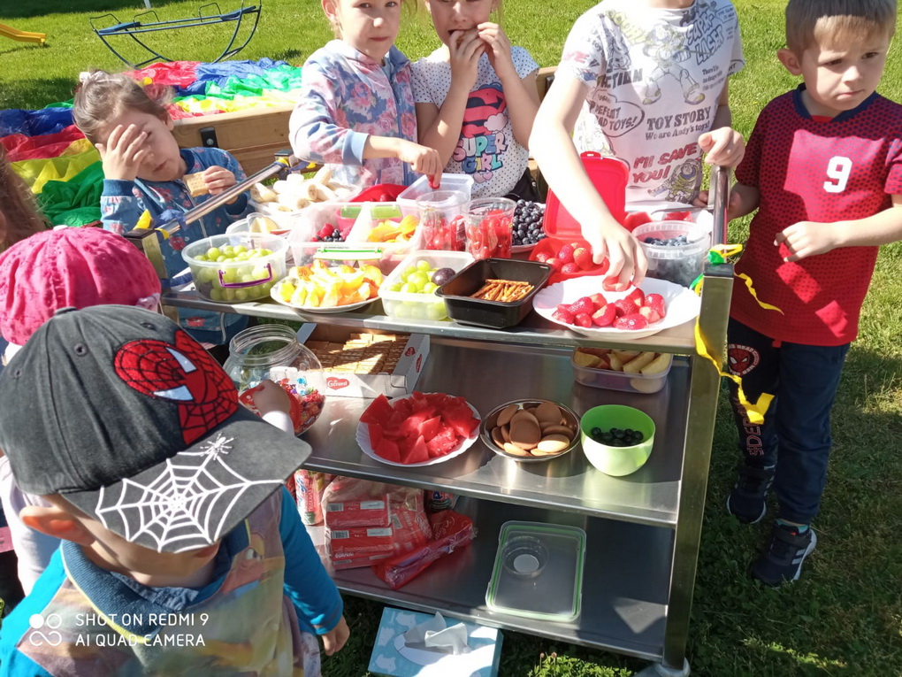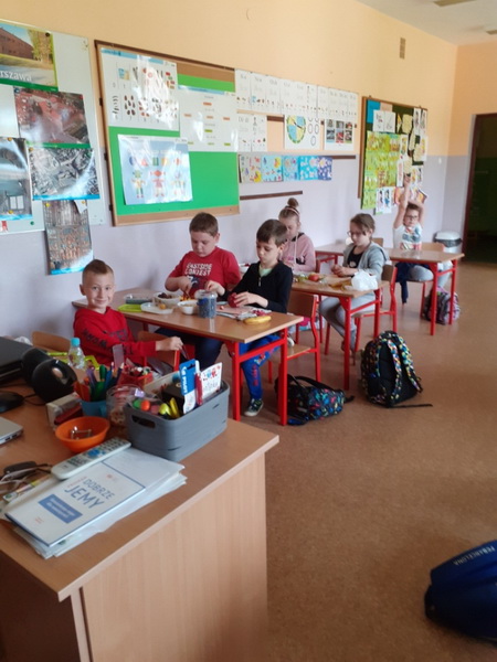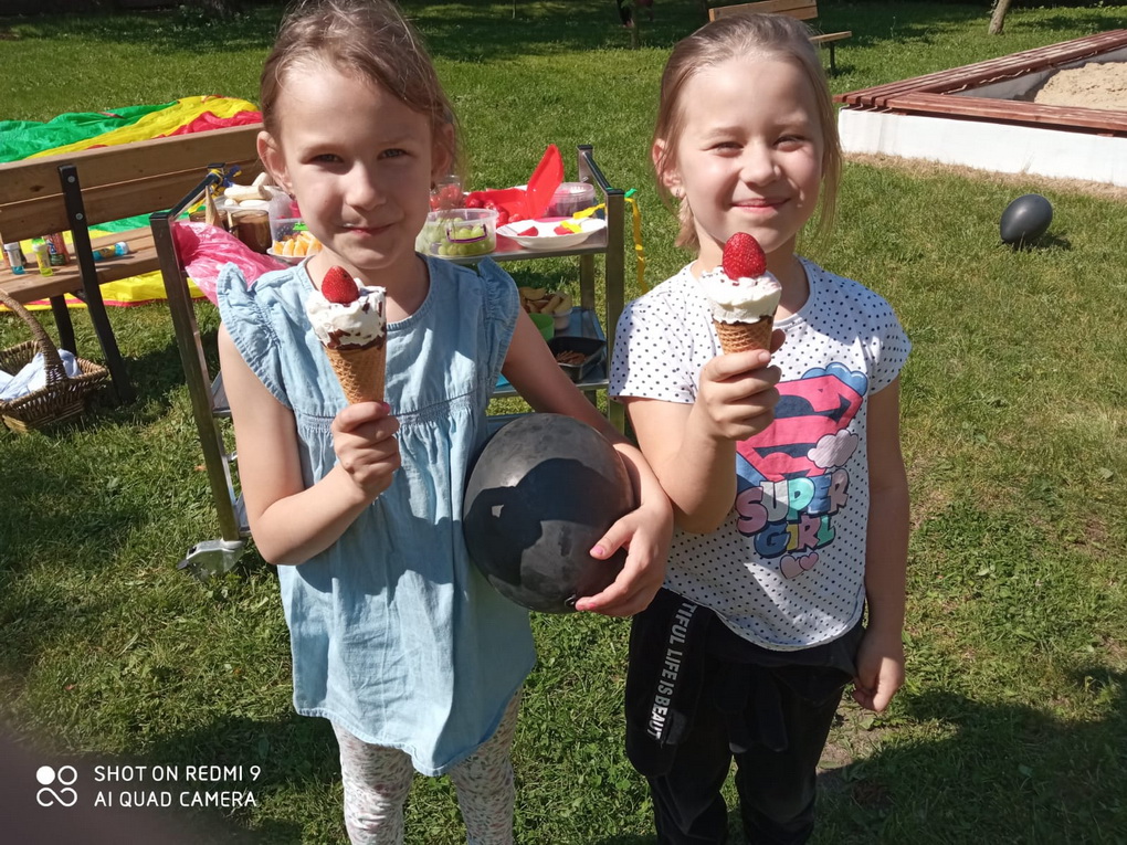 Dzień Dziecka i Sportu, obchodzony w naszej szkole wyjątkowo 02. czerwca, rozpoczął się dla uczniów klas 1-3 uroczystym apelem, w którym towarzyszyła nam Pani Dyrektor A. Wilczura. Przedstawiliśmy dzieciom krótką informację na temat Międzynarodowego Dnia Dziecka i wychowawczynie klas: I. Winiecka, E. Kuświk , R. Gąbka zaśpiewały Wszystkim zebranym dzieciom sto-lat i złożyły życzenia. Po apelu zaczął się dzień na wesoło. Wspólnie przygotowywaliśmy sałatkę owocową, został przeprowadzony konkurs na najciekawsze przebranie baśniowe, odbył się szereg zabaw i konkurencji sportowych a na zakończenie biesiadowaliśmy przy słodkim poczęstunku. Zabawy i konkurencje sportowe cieszyły się dużym zainteresowaniem dzieci, tym bardziej, że po każdej wygranej były nagradzane słodkimi prezentami. Podczas biesiady odwiedziła nas Pani K. Leśniak – przewodnicząca Rady Rodziców, która złożyła dzieciom życzenia i częstowała słodkościami. Ten dzień przyniósł Nam wiele radości i zadowolenia. Dzieci wspólnym głosem odpowiedziały nam, że Bardzo Im się Podobało. Serdecznie Dziękujemy Panu sołtysowi i radnemu A. Mielcarkowi, jak również Radzie Rodziców, za wsparcie finansowe, które przeznaczyliśmy na zakup nagród i słodkości.