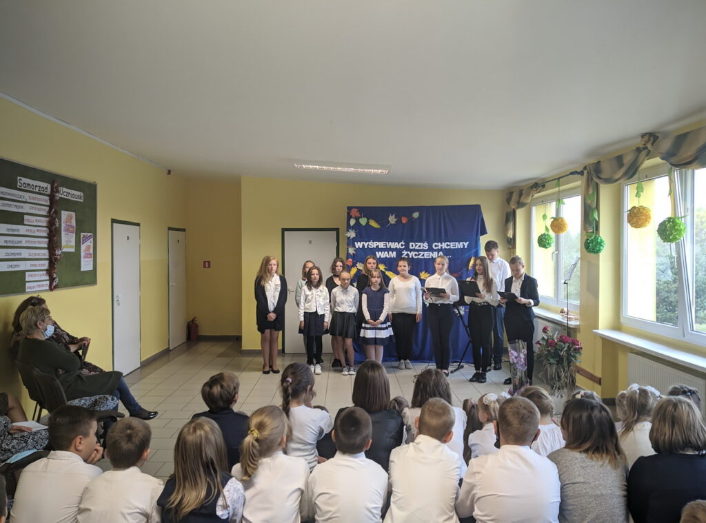 W tym szczególnym dniu wszyscy uczniowie oraz przedszkolaki mieli okazję złożyć nauczycielom podziękowania za przekazywaną wiedzę i trud włożony w kształtowanie serc i umysłów. Przygotowany na tę okazję program artystyczny przekazywał przede wszystkim życzenia słonecznych dni i zadowolenia z codziennej pracy, a wyrazem uczniowskiej wdzięczności były kwiaty i przepiękne pieśni