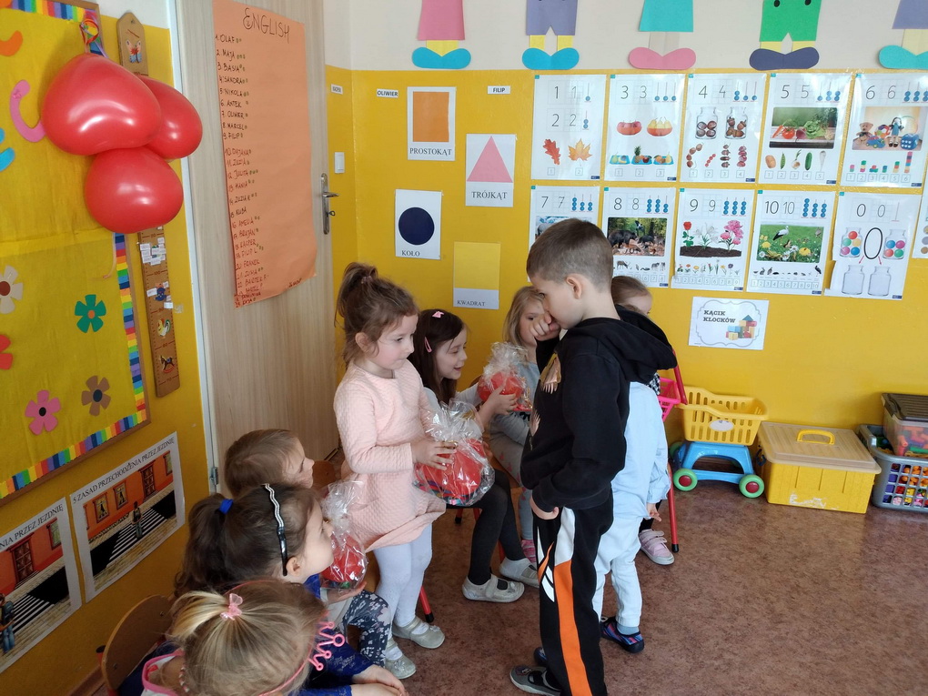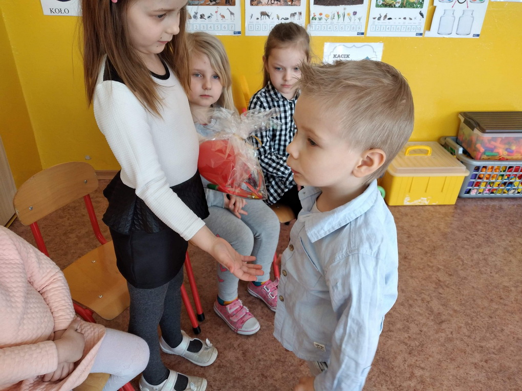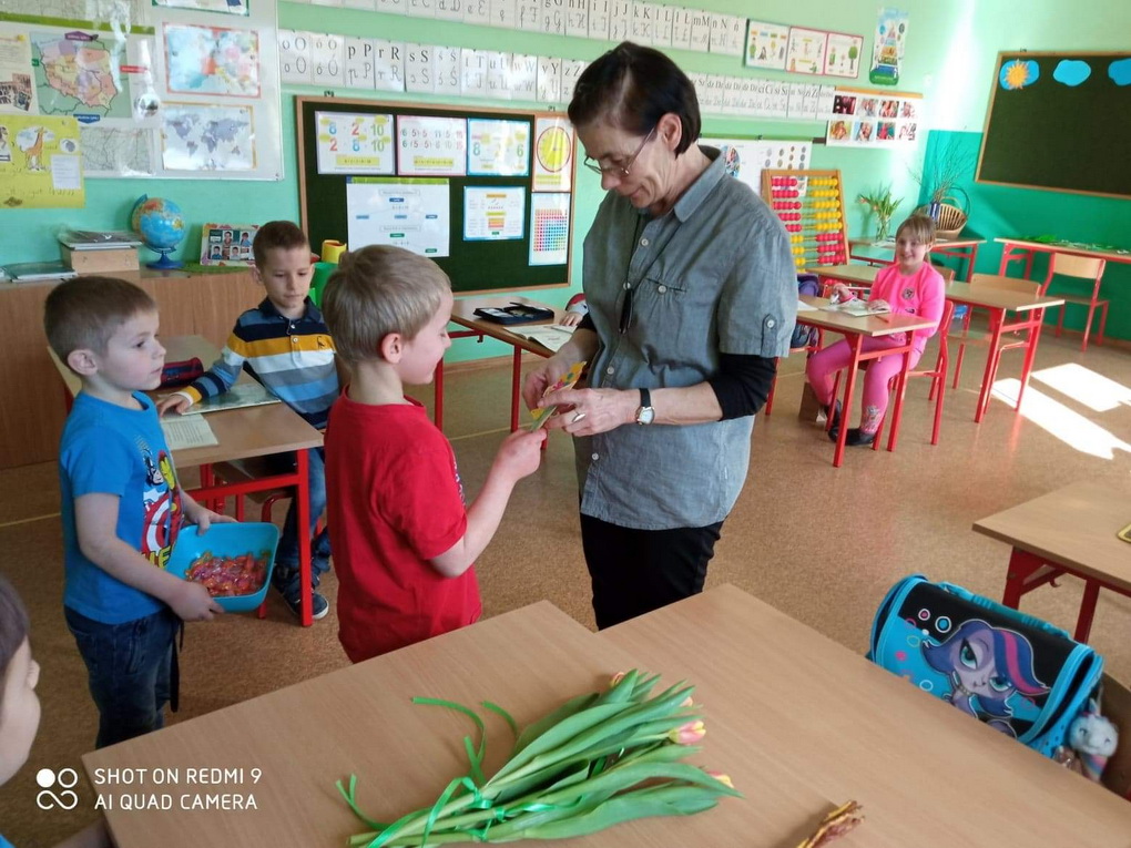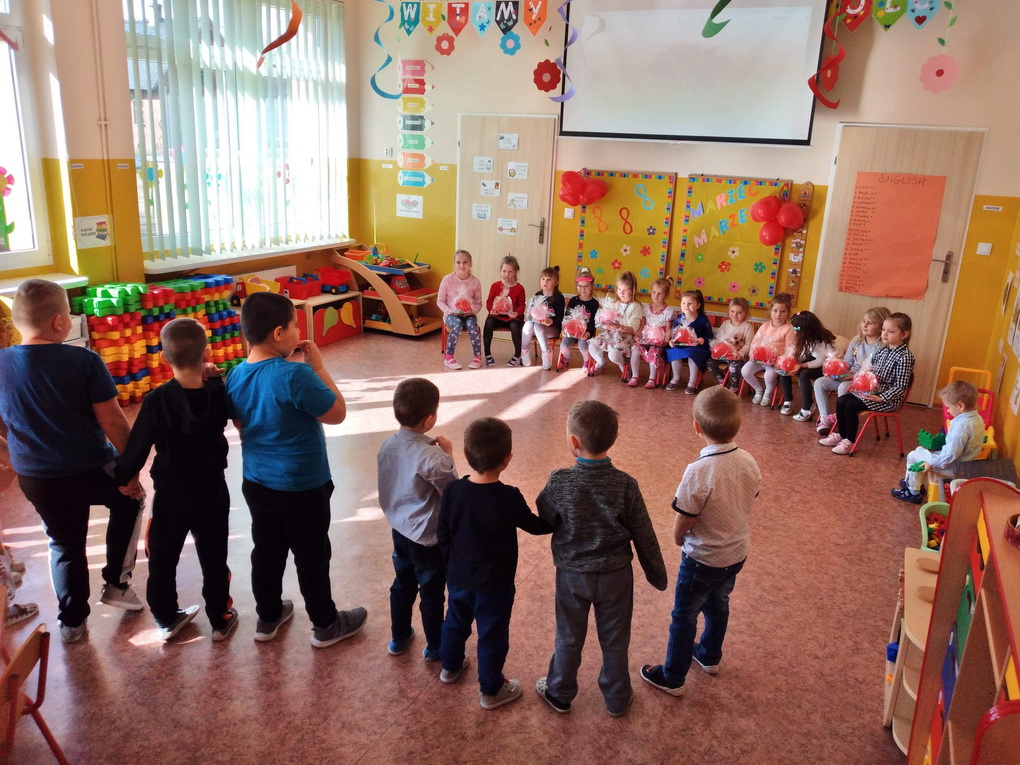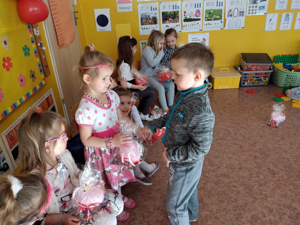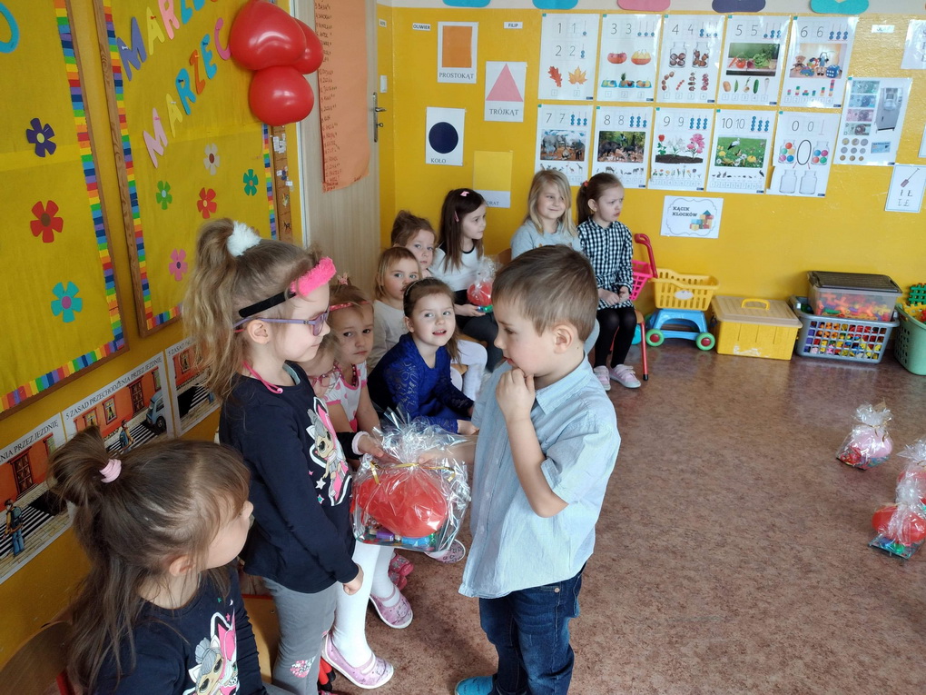 W tym szczególnym dniu chłopcy składali życzenia swoim paniom i dziewczynkom. Nie obyło się bez cukierków, drobnych upominków i kwiatów…