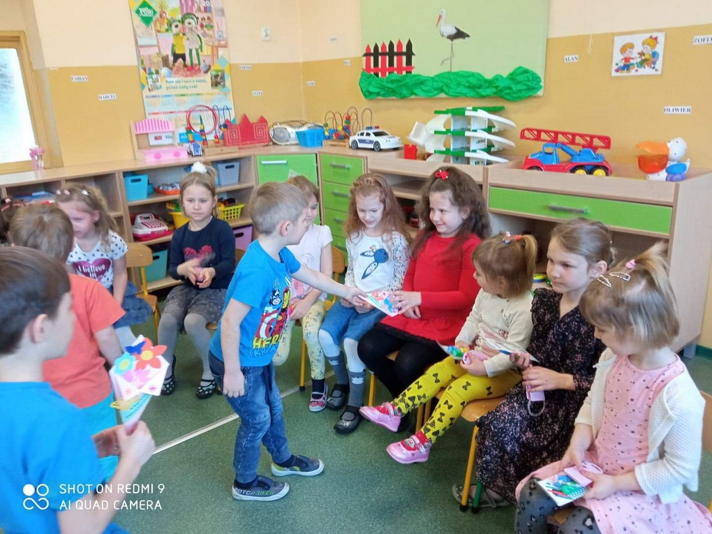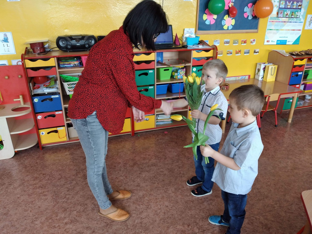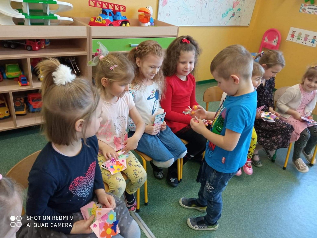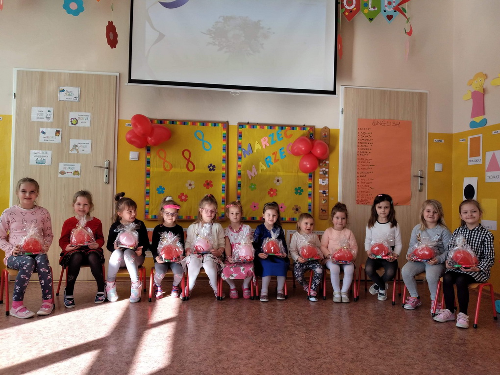 Święto Kobiet, które corocznie obchodzimy w naszym przedszkolu, to doskonała okazja do kształtowania u dzieci umiejętności okazywania najbliższym szacunku i nawyku obdarowywania innych upominkami.