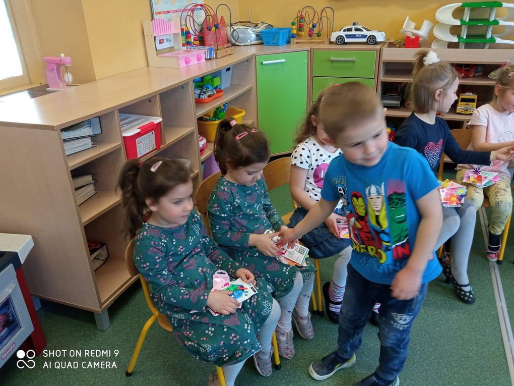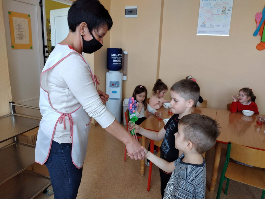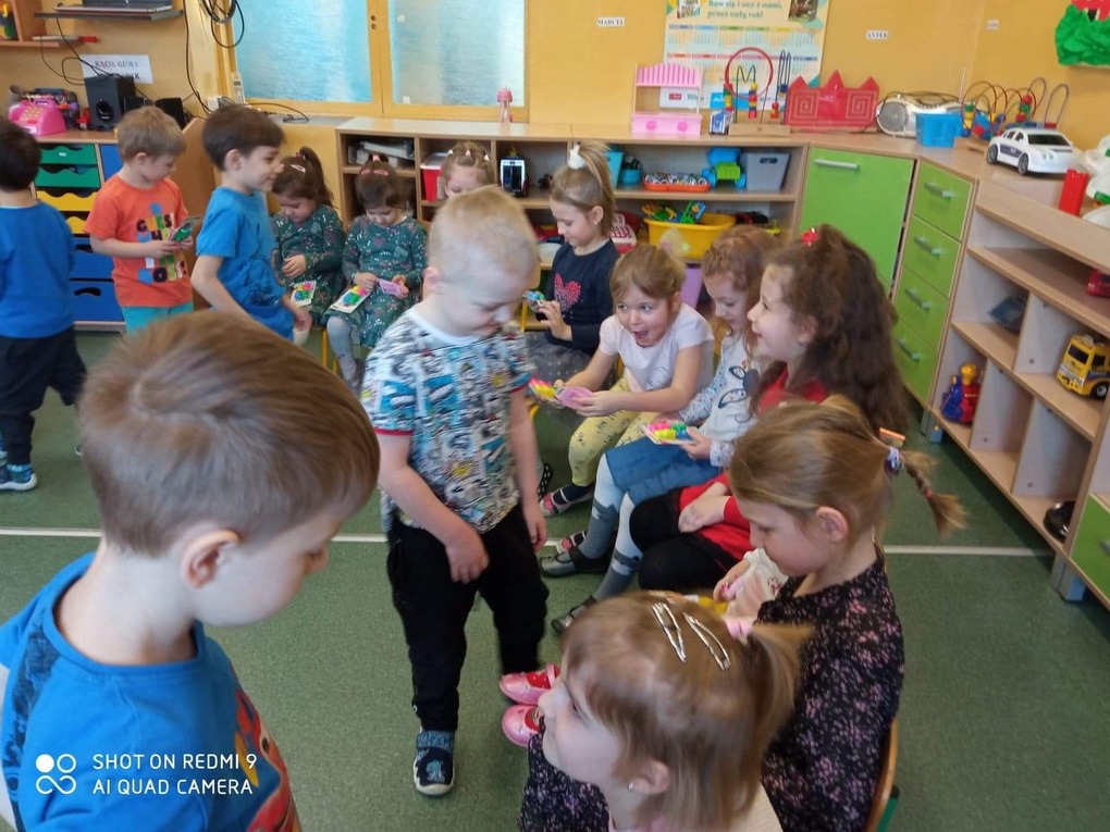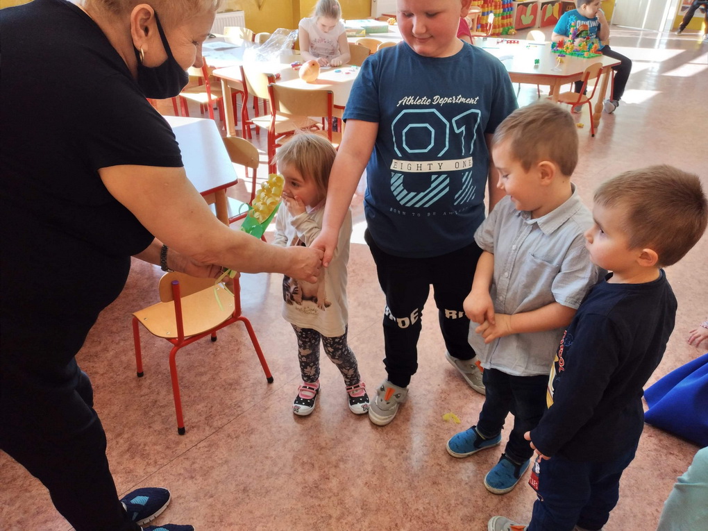 Święto Kobiet, które corocznie obchodzimy w naszym przedszkolu, to doskonała okazja do kształtowania u dzieci umiejętności okazywania najbliższym szacunku i nawyku obdarowywania innych upominkami.
