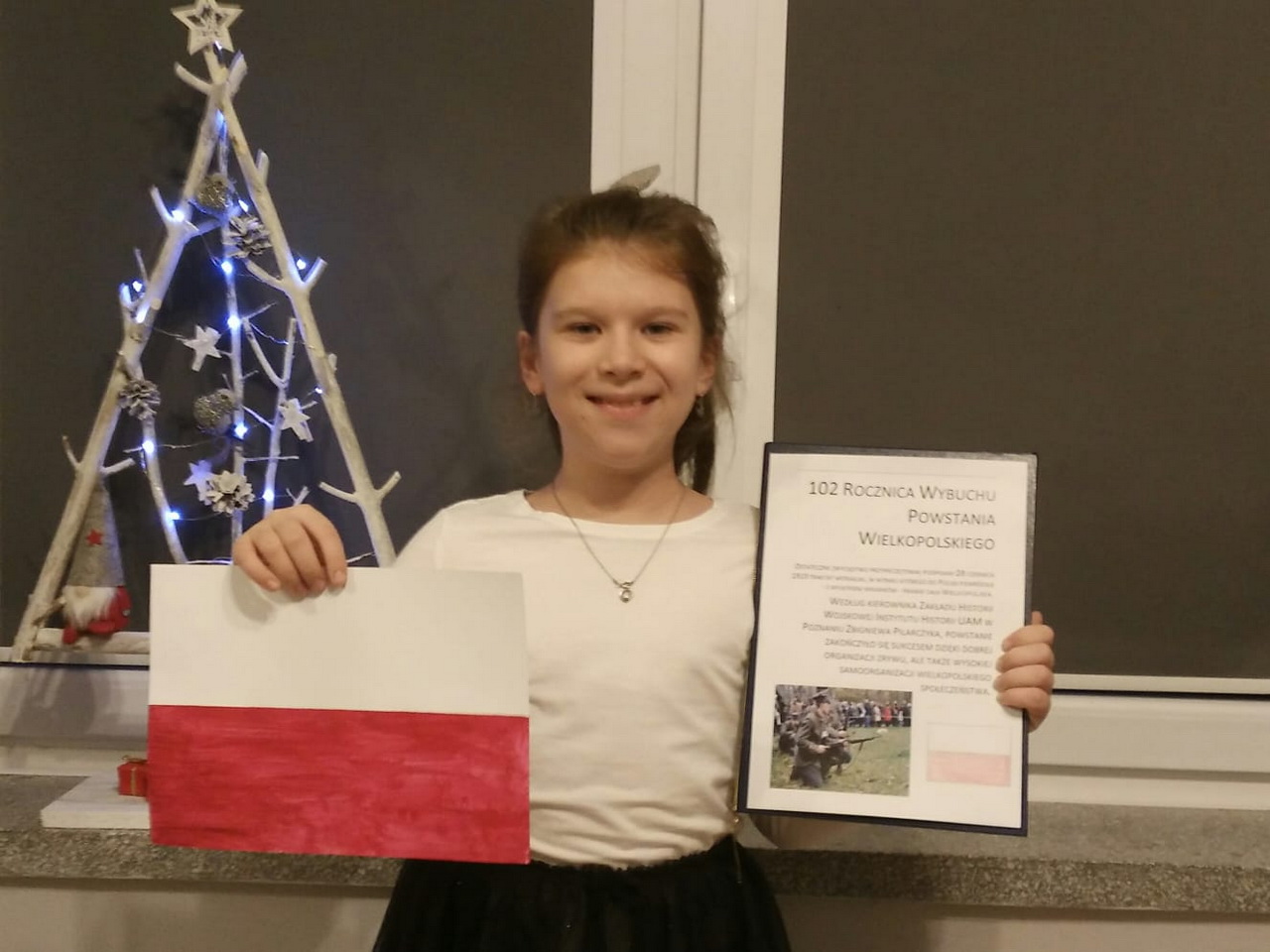 Z okazji 102 Rocznicy Wybuchu Powstania Wielkopolskiego, w hołdzie Powstańcom oraz wszystkim mieszkańcom naszej „Małej Ojczyzny”- Wielkopolski dedykujemy działania naszych uczniów wspierane przez dyrekcję i nauczycieli. Powstańcy wielkopolscy są wzorem godnym do naśladowania poprzez swoje marzenia o wolności, poprzez swoją determinację w walce o prawo do własnego kawałka ziemi. Zwycięstwo Powstania stanowi wzór działań podejmowanych dla Ojczyzny, zakończonych sukcesem. Staramy się popularyzować wśród uczniów wiedzę na temat Powstania, wychowywać młode pokolenie w duchu patriotyzmu, a zarazem przywiązania do „Małej Ojczyzny” – czyli regionu, który zamieszkują. Wszystko to stanowi fundament, na którym budujemy naszą pracę wychowawczą.