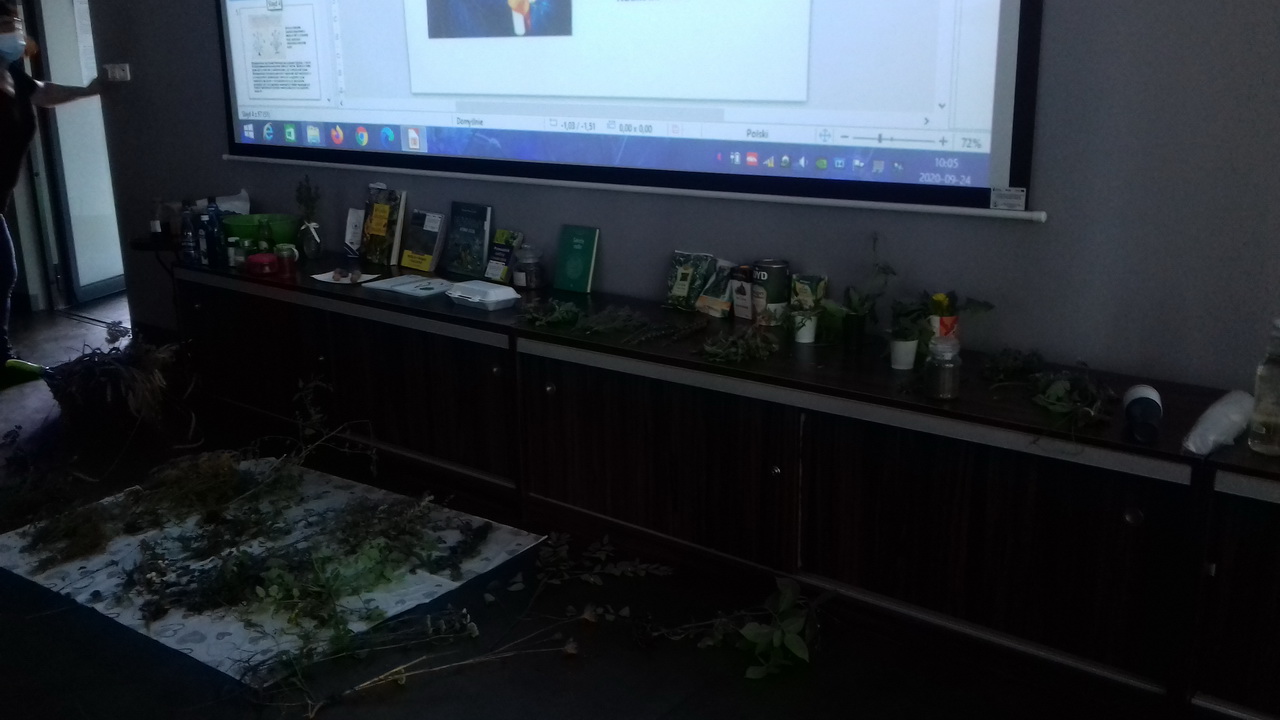 Tematem wycieczki było ziołolecznictwo. Celem: poznanie ziół i ich dobroczynnego wpływu na zdrowie człowieka. Spotkanie miało formę warsztatów i rozpoczęło się zajęciami w terenie, w trakcie których uczestnicy- na pobliskiej łące- poznawali rosnące tam zioła i uczyli się rozpoznawać najpospolitsze ich gatunki ( mlecz, mniszek lekarski, krwawnik pospolity, rdestnica, koniczyna, jasnota). Dalszy ciąg warsztatów odbył się w Sali PCEiPP. Uczniowie obejrzeli bardzo ciekawą prezentację opowiadającą m.in. o historii ziół i uczyli się rozpoznawać zioła za pomocą maty edukacyjnej i zielników. |
