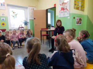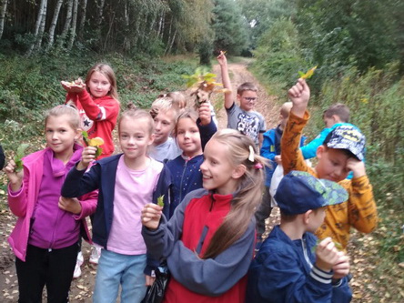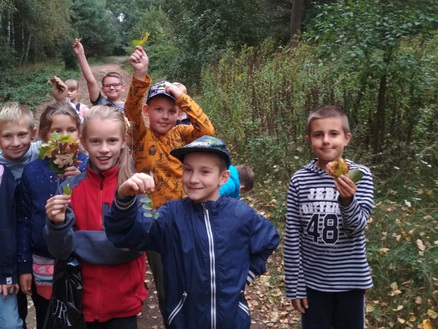 Piękna, słoneczna pogoda sprzyjała radosnym zabawom w grupie, rozmowom oraz aktywności fizycznej. Podziwiając jesienną przyrodę, uczniowie  zgromadzili kolorowe dary, które po powrocie z wycieczki ozdobiły klasowy kącik przyrody.