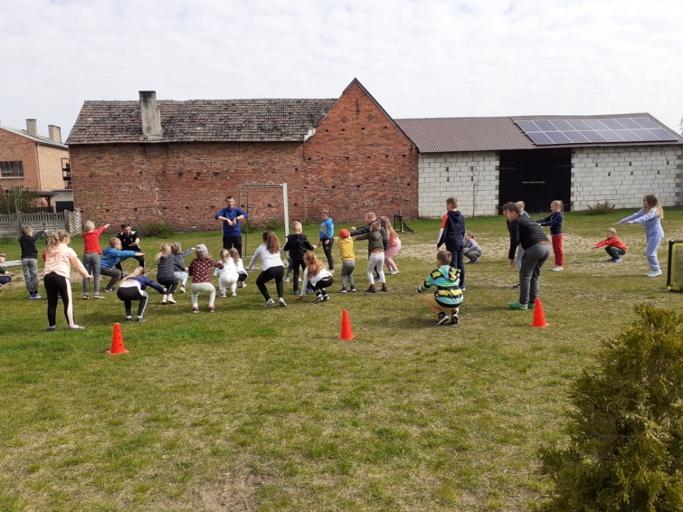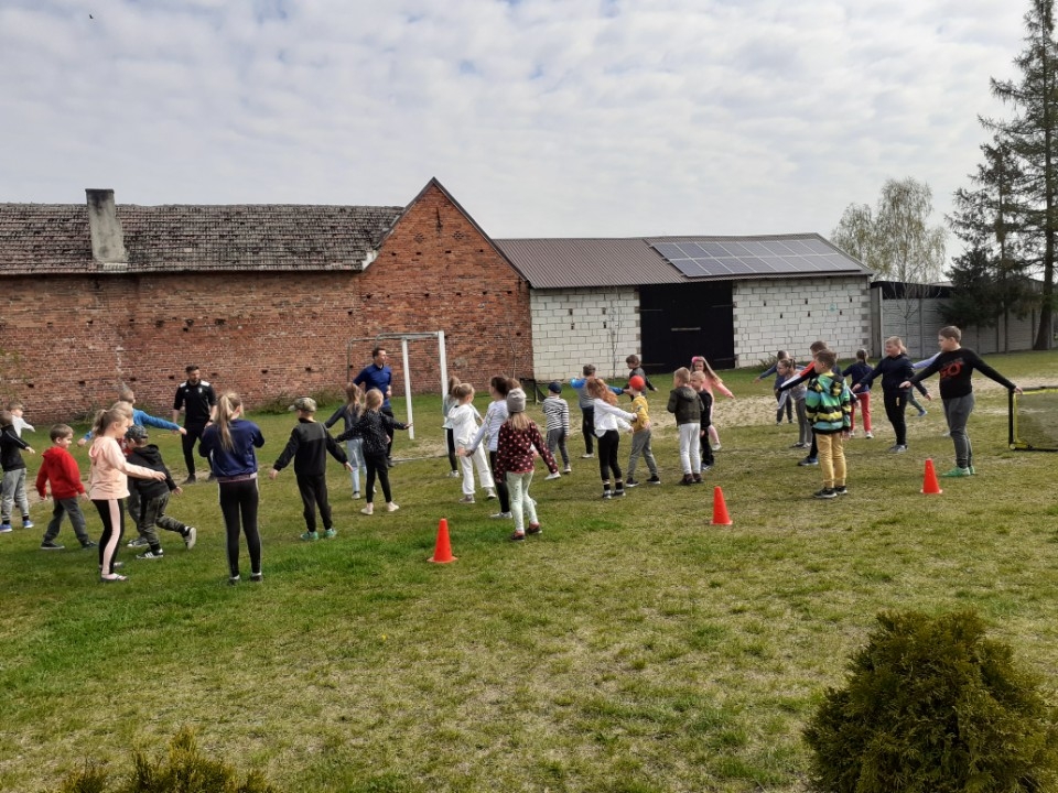 04.05.2022 r. odbył się trening piłki nożnej dla dziewcząt i chłopców przeprowadzony przez Patryka Pleciaka i Grzegorza Kuświka – szkoleniowców Akademii Piłkarskiej w Międzyborzu.