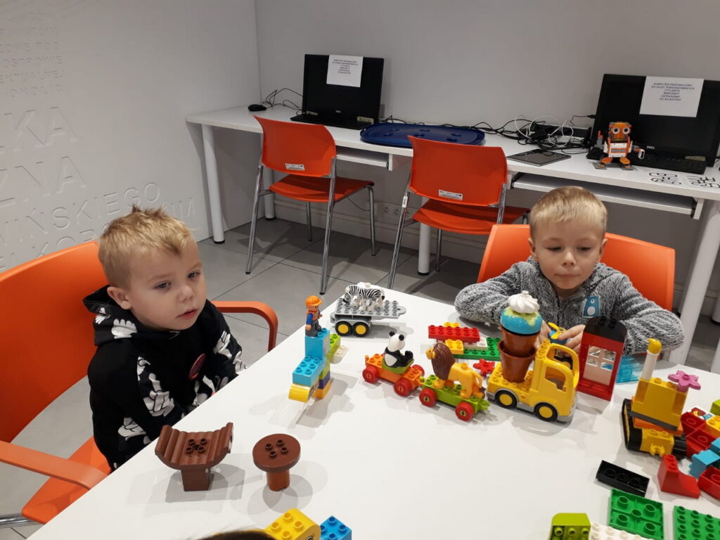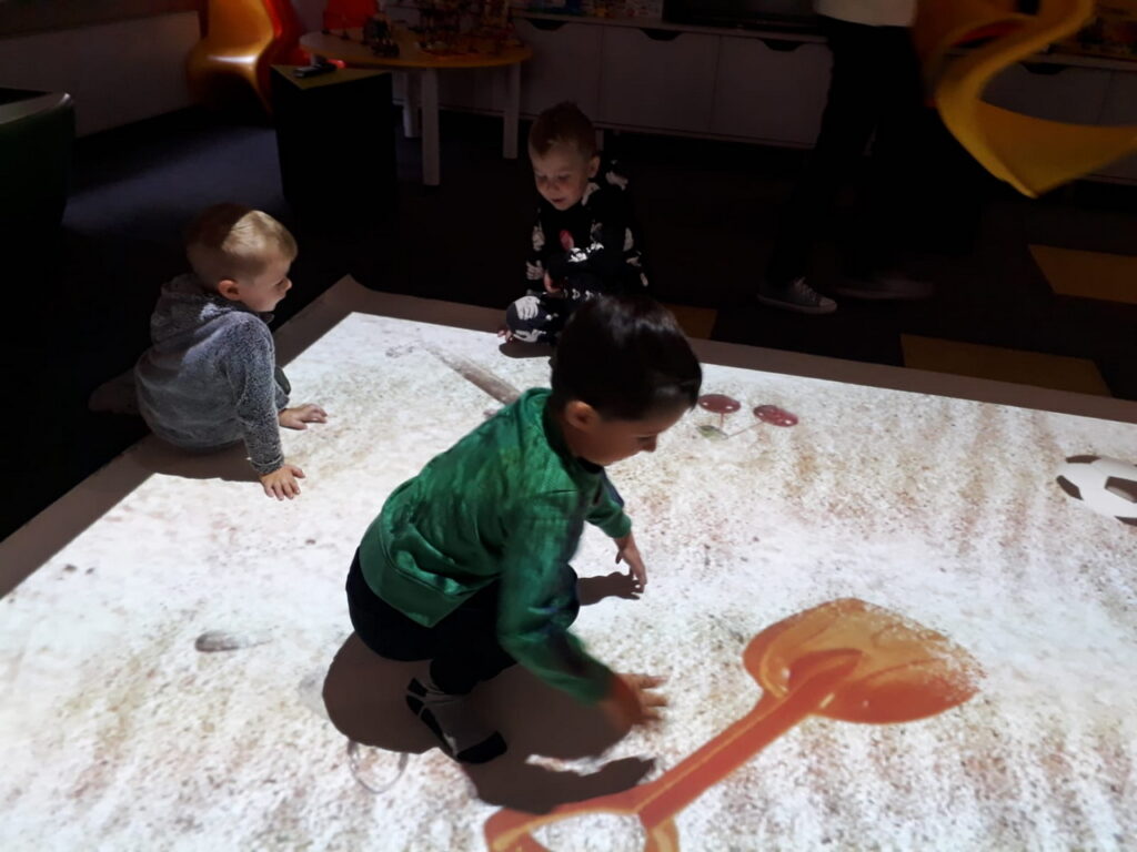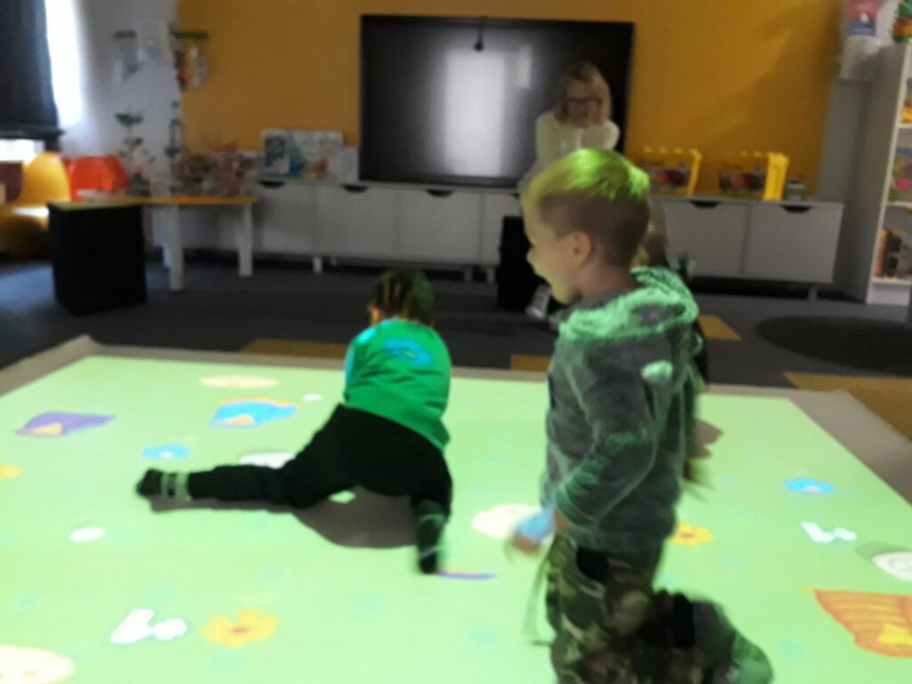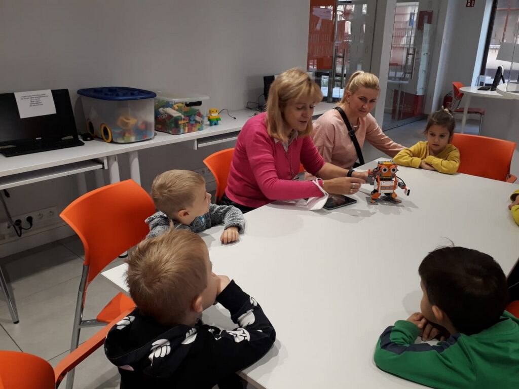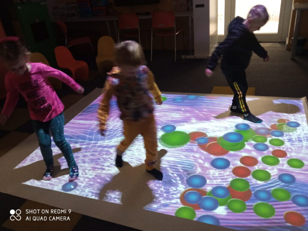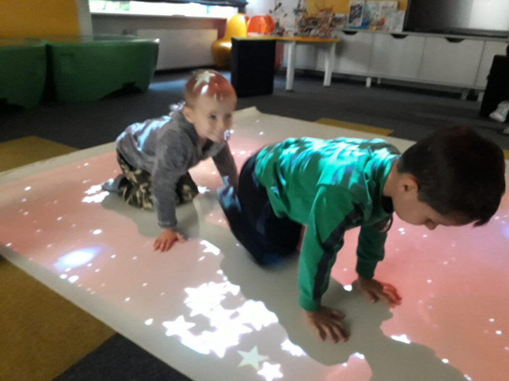 W poniedziałek 11 października przedszkolaki z oddziału w Chojniku wraz ze swoimi opiekunami udali się do ostrowskiej Mediateki. W ramach spotkania dzieci wzięły udział w trzech rodzajach ciekawych zajęć interaktywnych. Dużą frajdę sprawiło im tworzenie własnych robotów z góry kloców lego. Następnie przeniosły się na interaktywny dywan przeznaczony do ćwiczeń, gier i zabaw ruchowych. Po dobrej zabawie, wszyscy mogli odpocząć w wygodnych fotelach i obejrzeć bajkę na suficie.