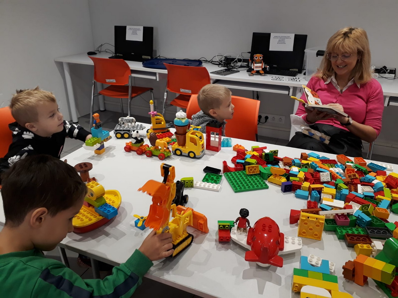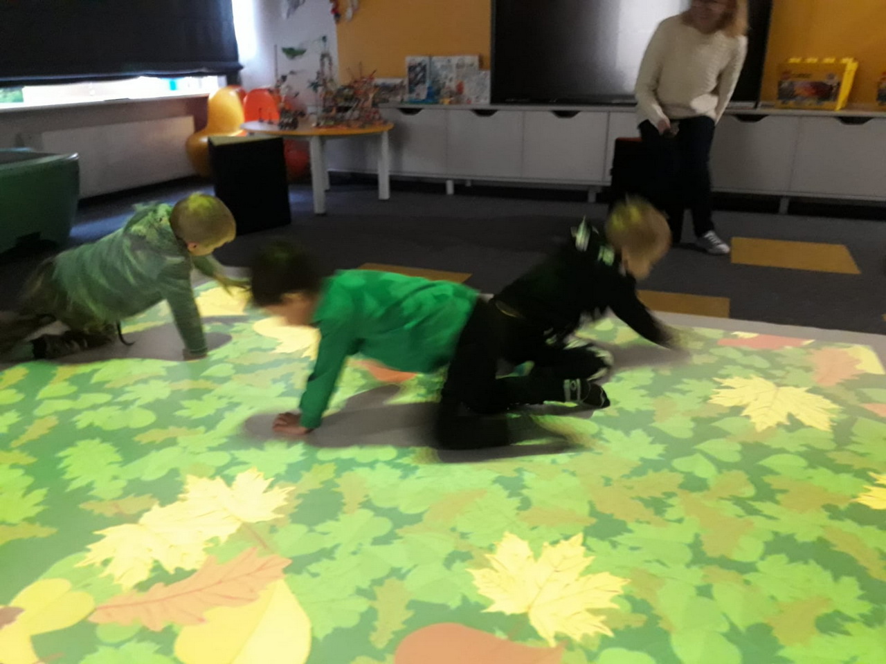 W poniedziałek 11 października przedszkolaki z oddziału w Chojniku wraz ze swoimi opiekunami udali się do ostrowskiej Mediateki. W ramach spotkania dzieci wzięły udział w trzech rodzajach ciekawych zajęć interaktywnych. Dużą frajdę sprawiło im tworzenie własnych robotów z góry kloców lego. Następnie przeniosły się na interaktywny dywan przeznaczony do ćwiczeń, gier i zabaw ruchowych. Po dobrej zabawie, wszyscy mogli odpocząć w wygodnych fotelach i obejrzeć bajkę na suficie.