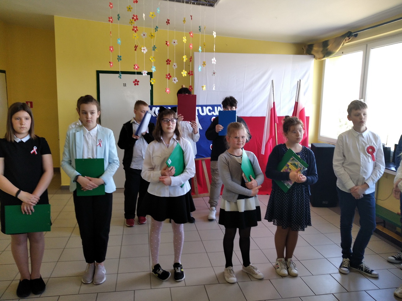 Dnia 29 kwietnia uczniowie klas: VI i IV przygotowali krótką część artystyczną dotyczącą rocznicy uchwalenia Konstytucji 3 Maja. Przygotowana inscenizacja przeniosła wszystkich w minione wieki. Uczniowie przybliżyli wydarzenia związane z powstaniem tej ustawy, będącej pierwszą w Europie, a drugą w świecie po Konstytucji Stanów Zjednoczonych. Przypomniano również sylwetki tych, co podsunęli myśl, aby stworzyć „cud majowy”, bez których nie byłoby tego święta. Byli to: król Stanisław August Poniatowski, marszałek Stanisław Małachowski, Ignacy Potocki, Hugo Kołłątaj, Stanisław Staszic. Na zakończenie została odśpiewana Rota przez wszystkich uczestniczących w akademii.
