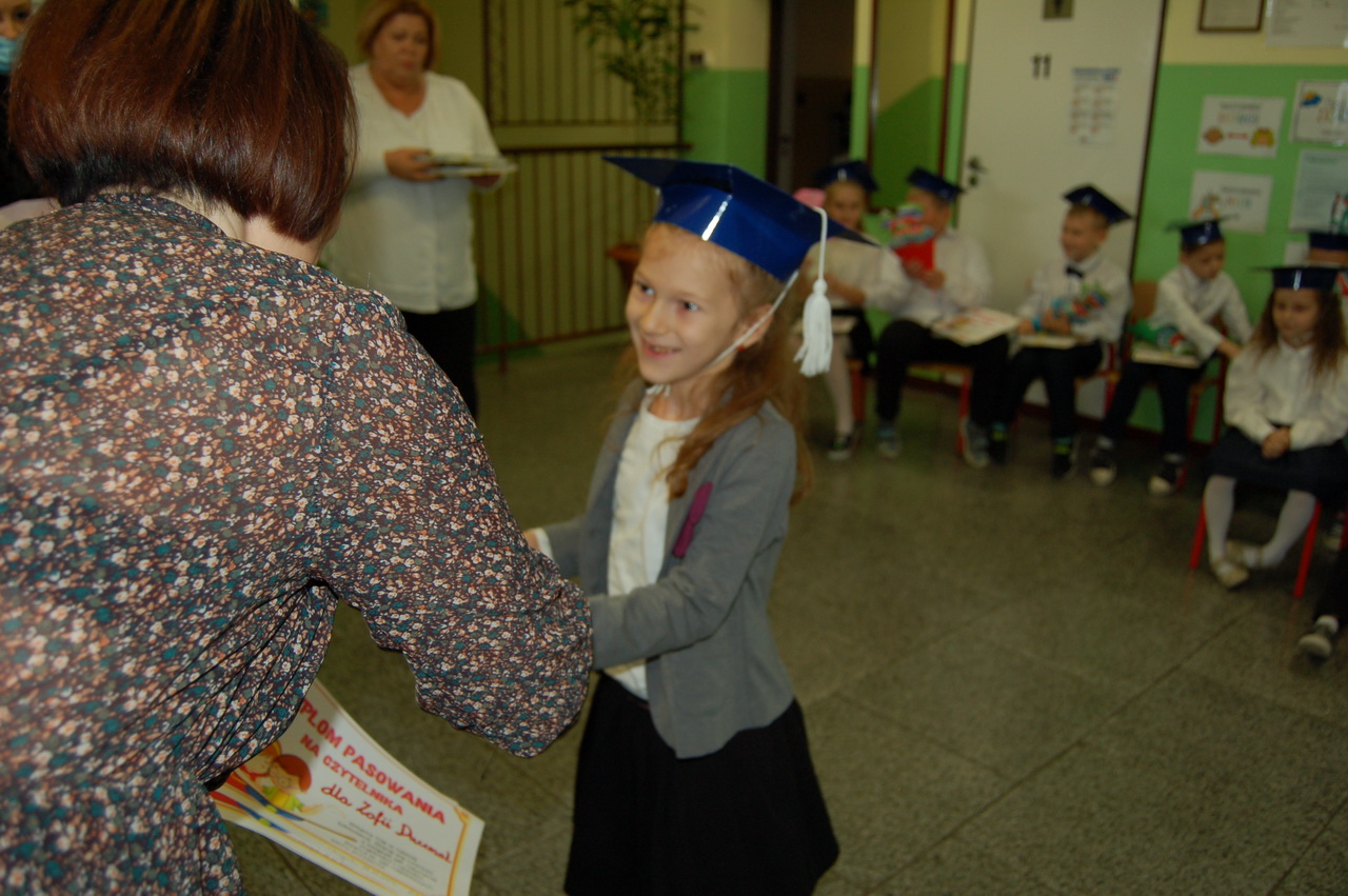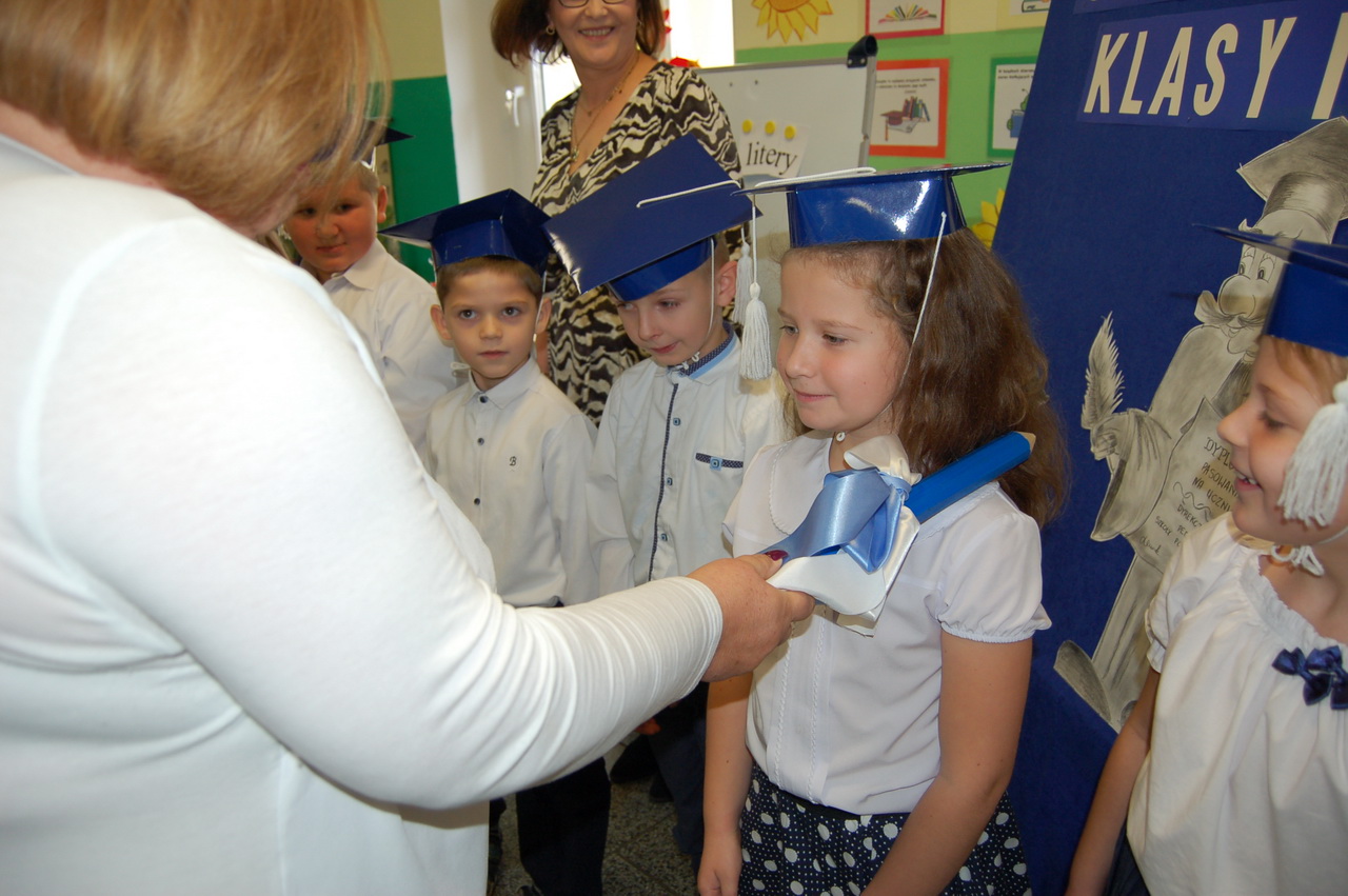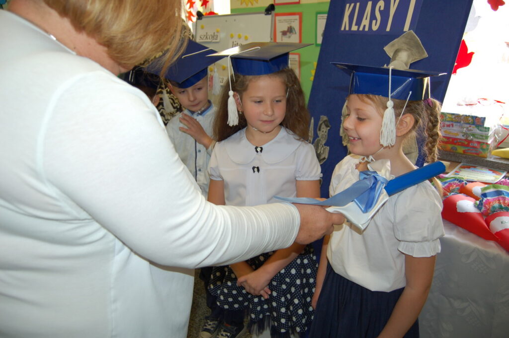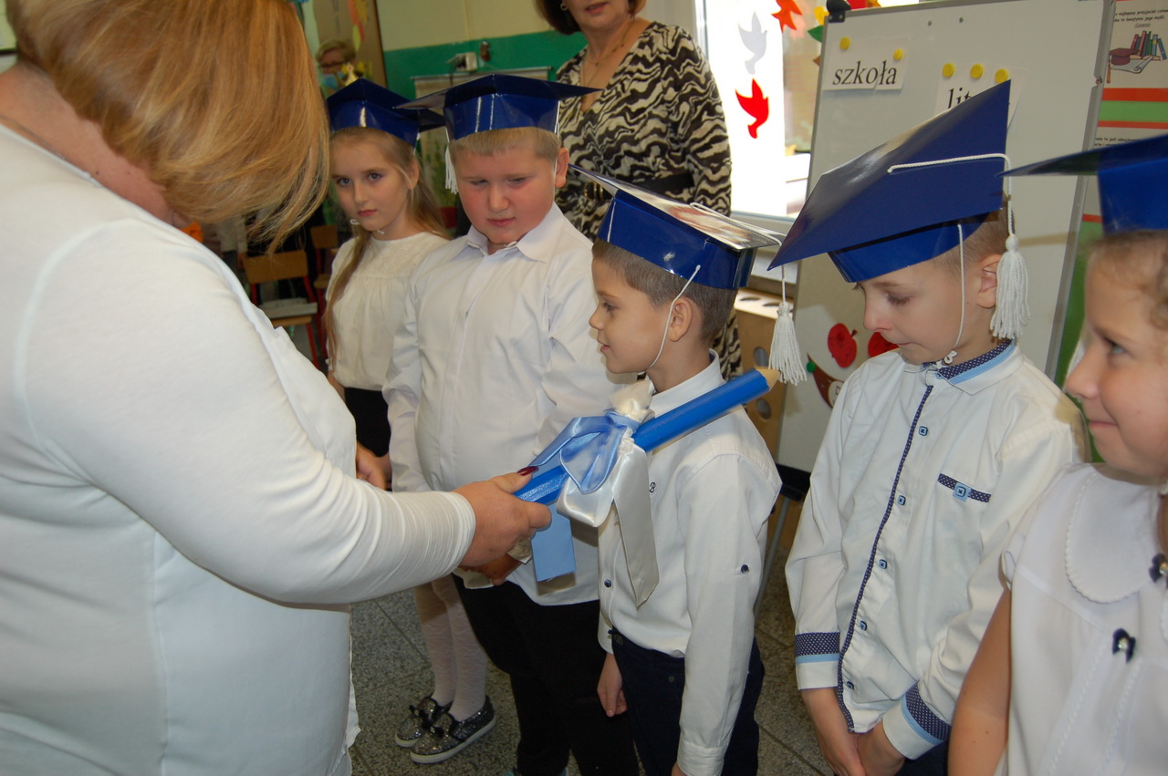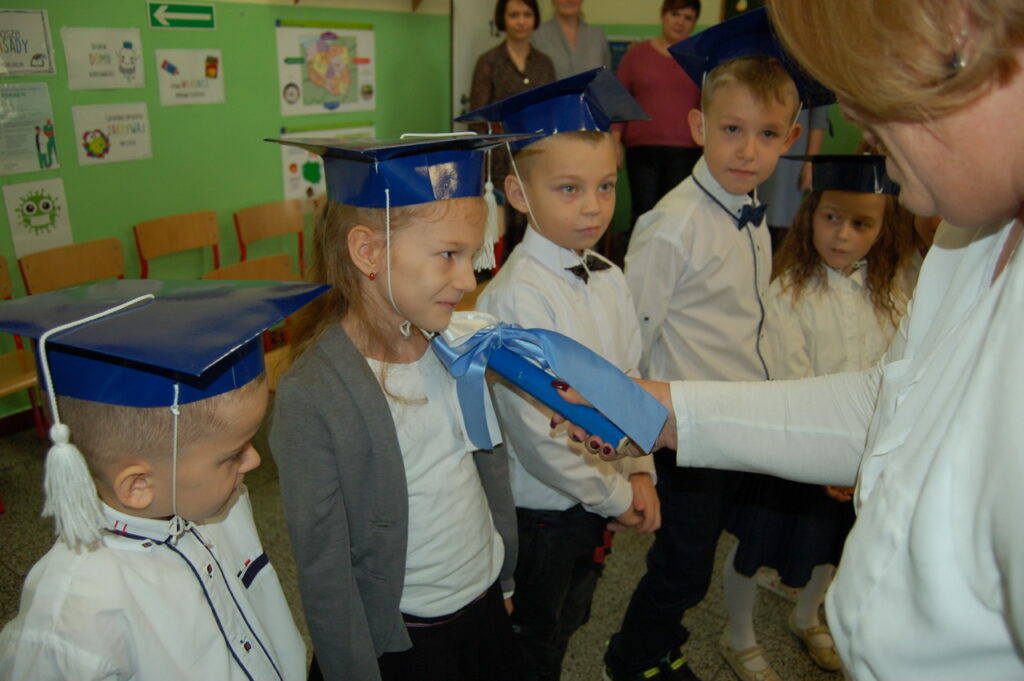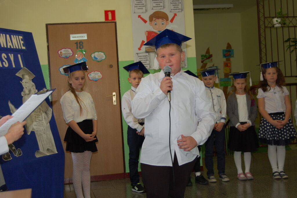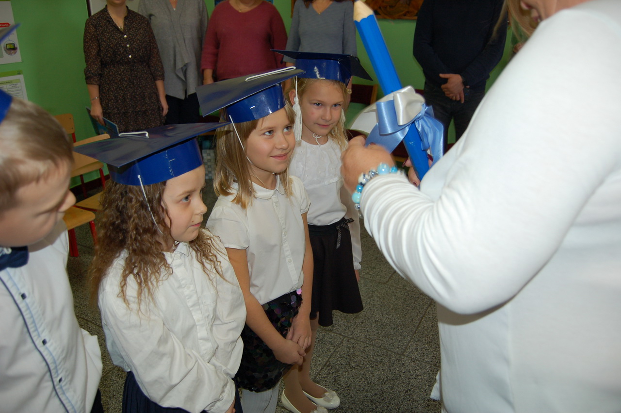 Dzieci przedstawiły krótki program, w którym zaprezentowały swoje umiejętności. Na poczet flagowy uroczyście ślubowały być dobrymi uczniami, kolegami i Polakami. Pani dyrektor Halina Doktór dokonała symbolicznego pasowania uczniów.