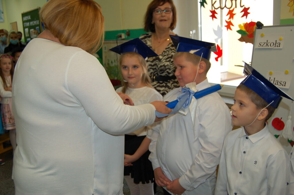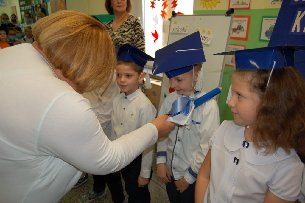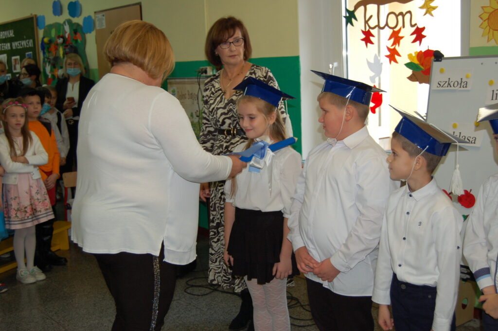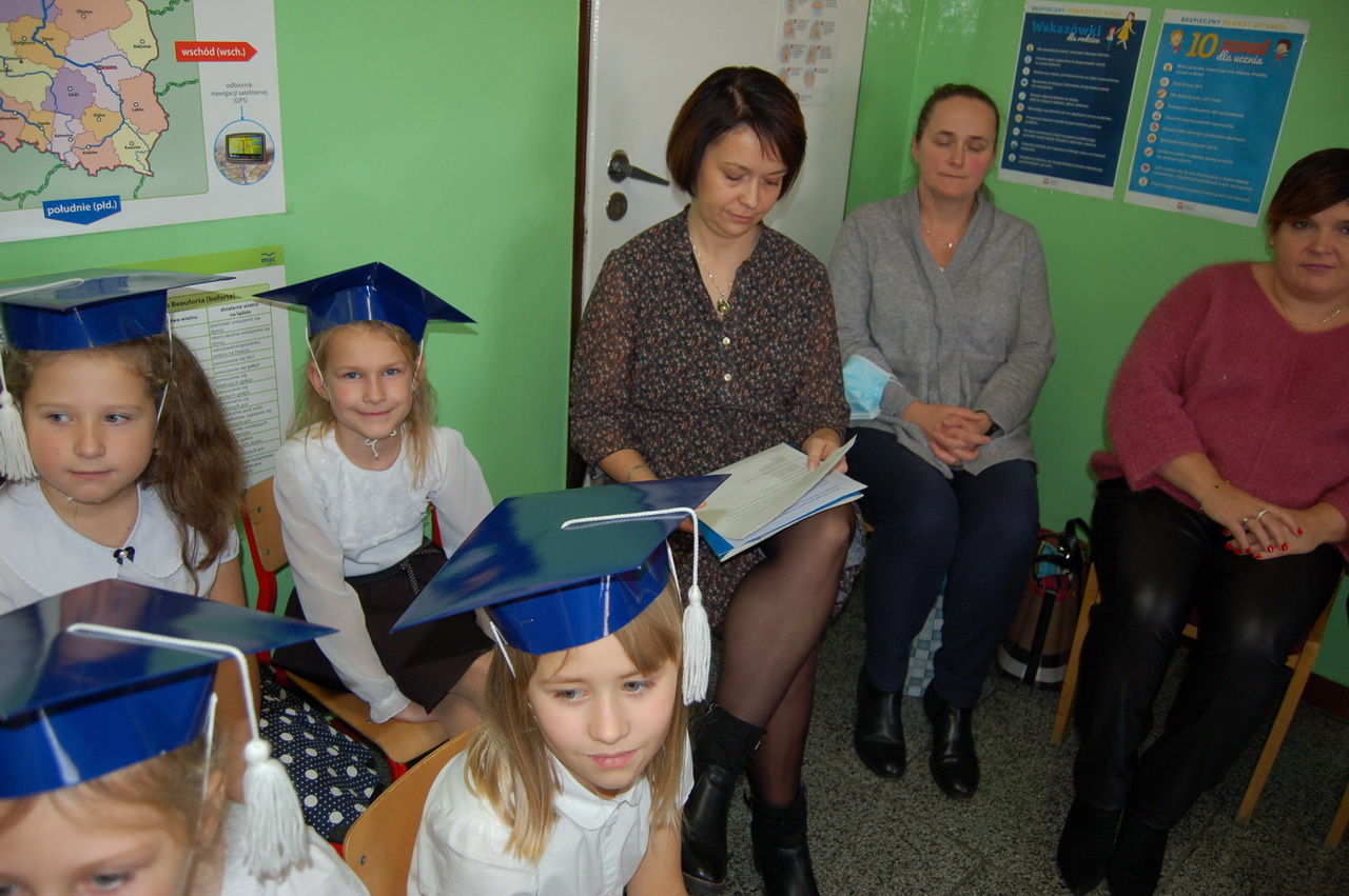 W naszej szkole uroczystość pasowania na ucznia odbyła się 18.11.2021 r., na którą przybyli zaproszeni goście : Pani Justyna Maryniak -Sekretarz Gminy Sośnie, Pani Arleta Zadka – Dyrektor CUW w Sośniach, Pani Katarzyna Leśniak – Przewodnicząca Rady Rodziców oraz rodzice uczniów klasy I.