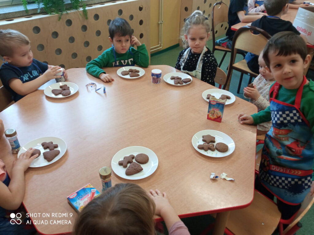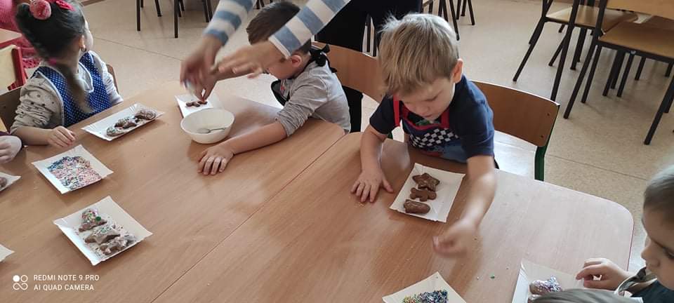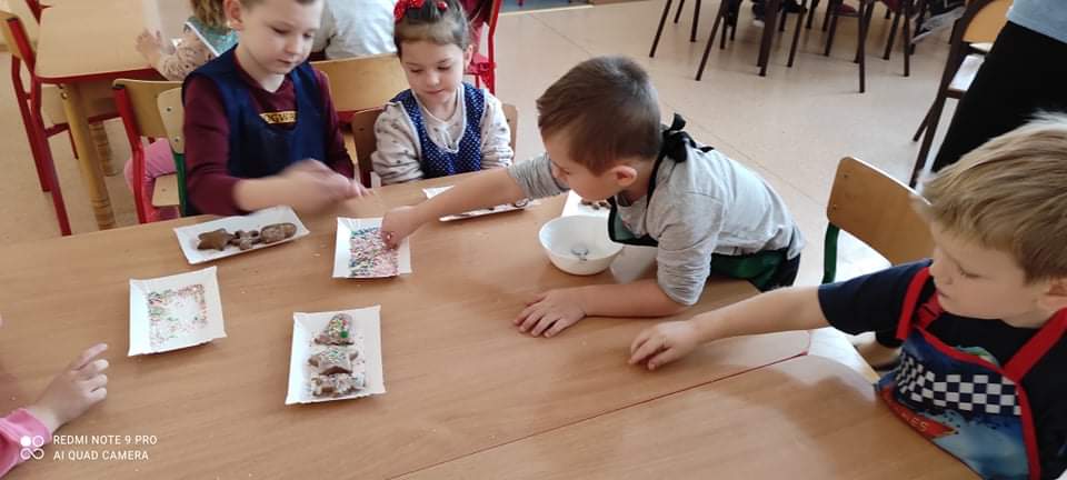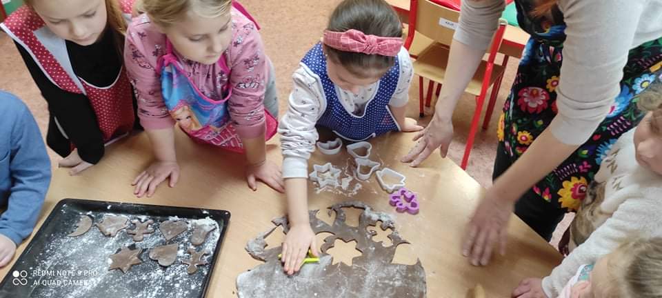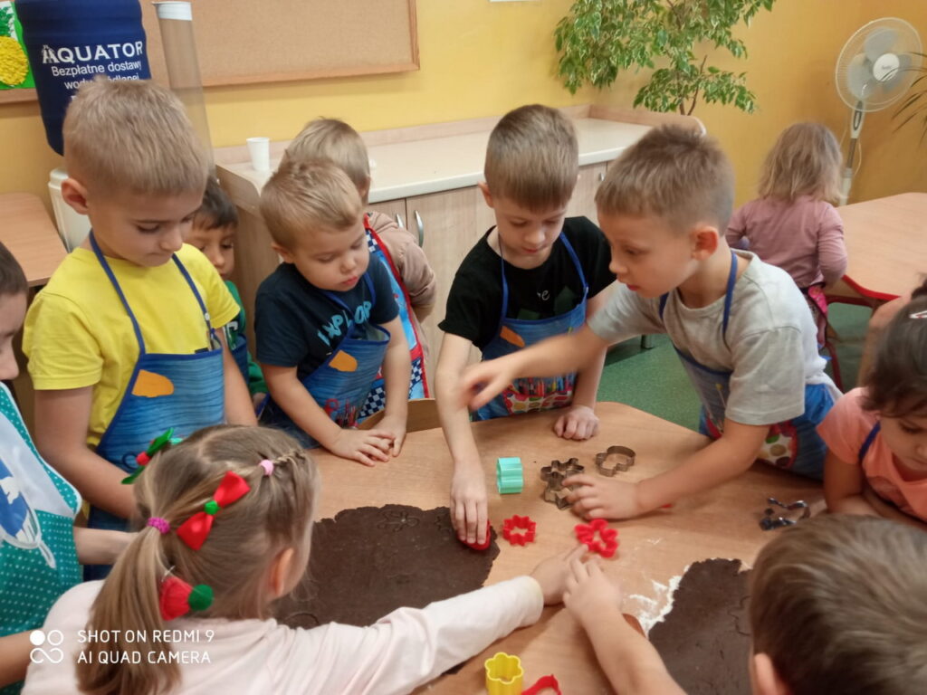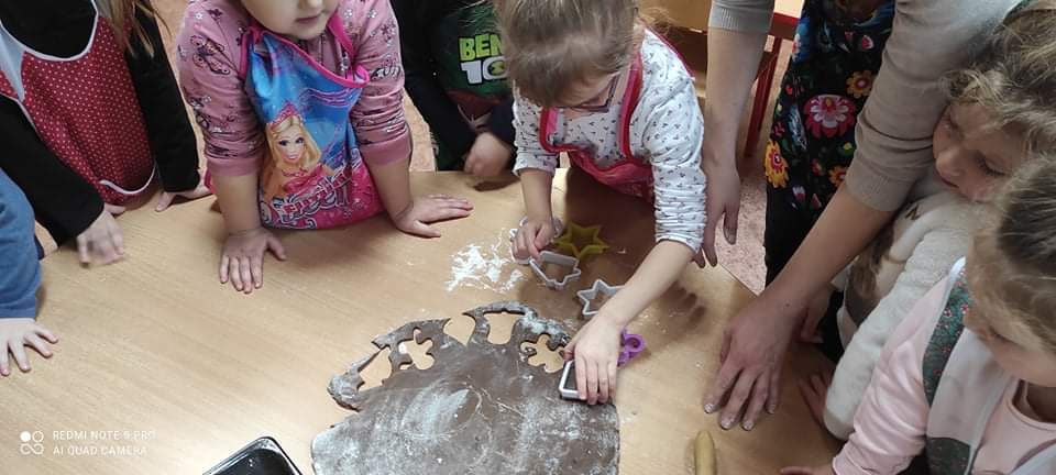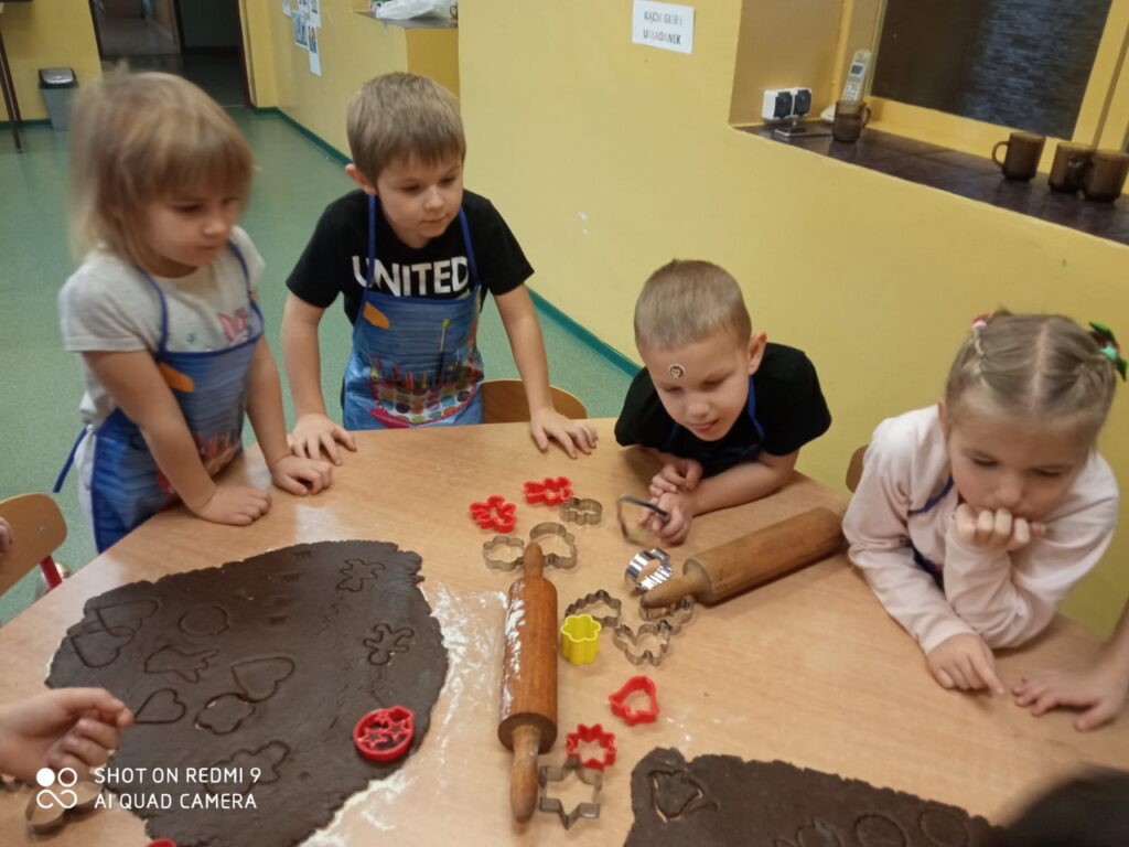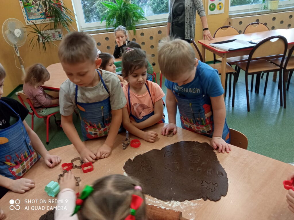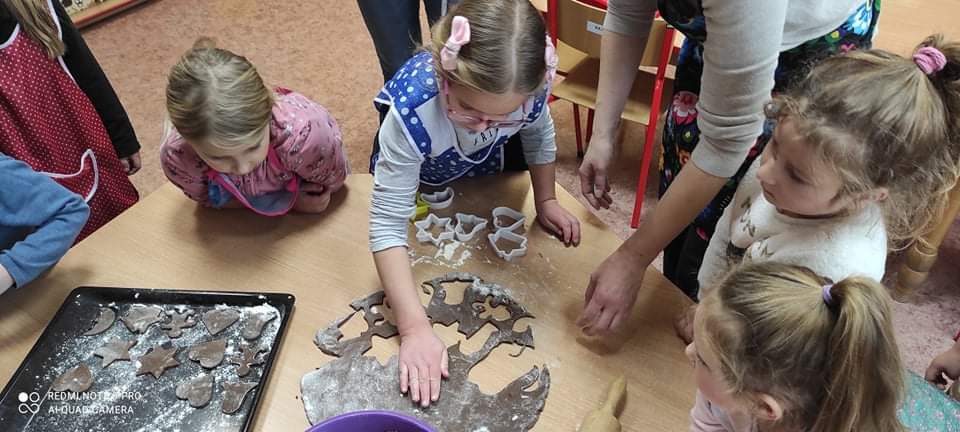 Zgodnie z przedświąteczną tradycją nasze przedszkolaki upiekły pyszne świąteczne pierniczki. Najpierw dzieci poznały składniki i sposób wykonania ciasta, a następnie, po dokładnym umyciu rąk, ochoczo zabrały się do pracy.
