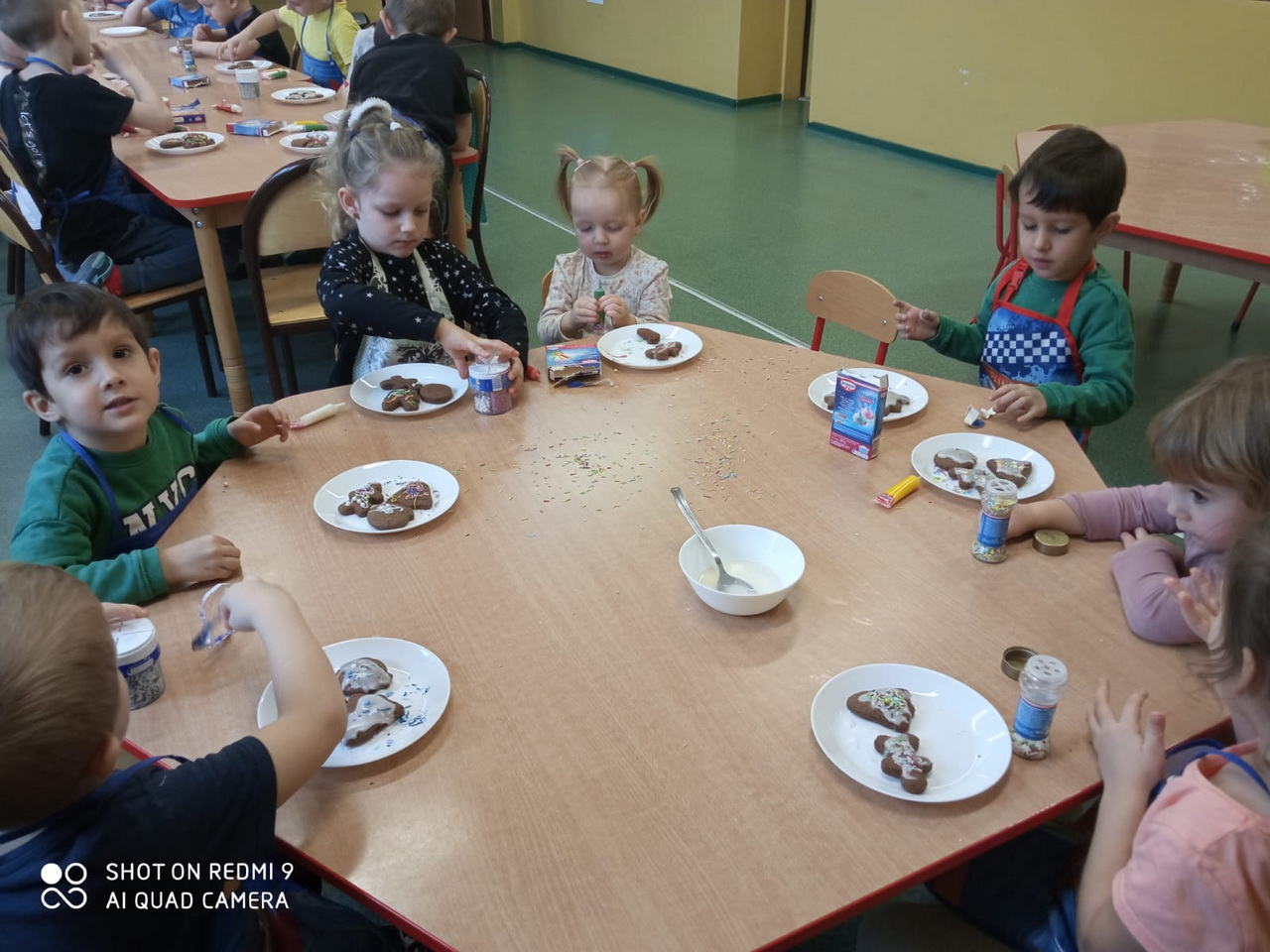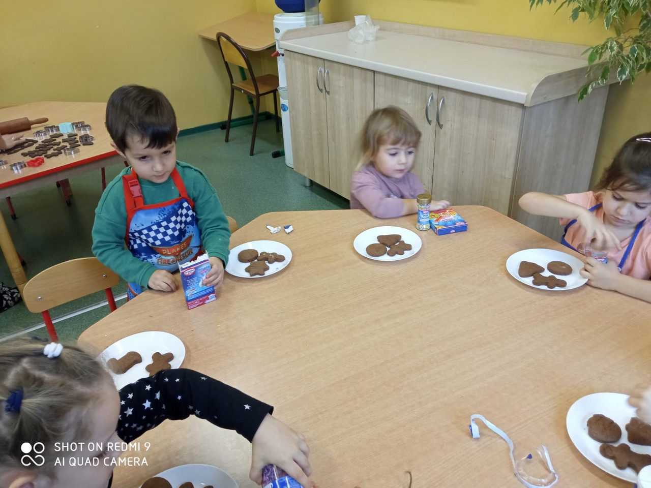 Zgodnie z przedświąteczną tradycją nasze przedszkolaki upiekły pyszne świąteczne pierniczki. Najpierw dzieci poznały składniki i sposób wykonania ciasta, a następnie, po dokładnym umyciu rąk, ochoczo zabrały się do pracy.