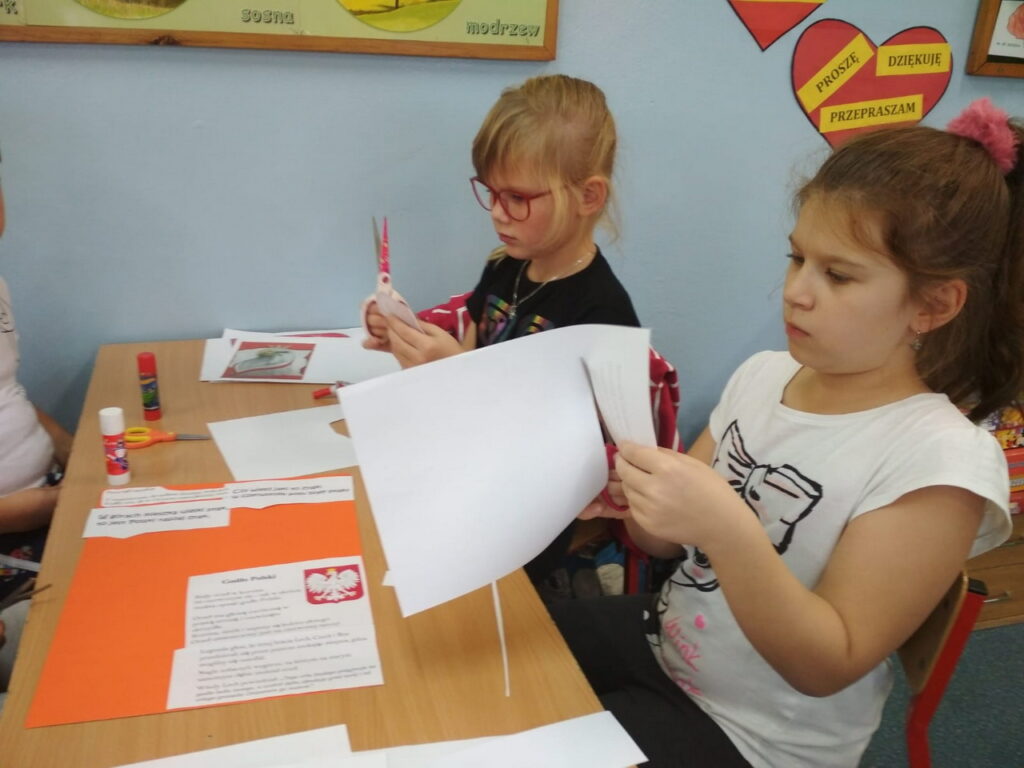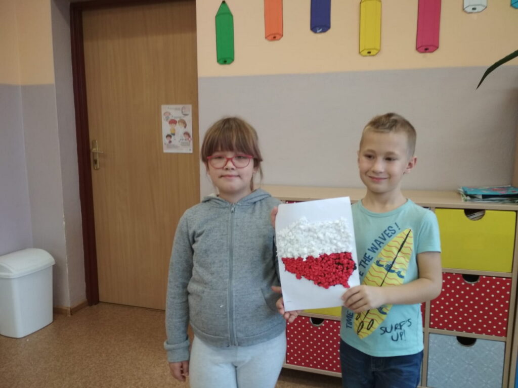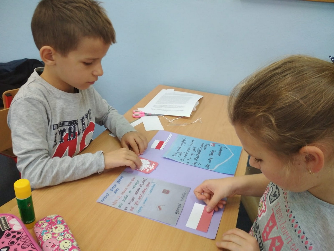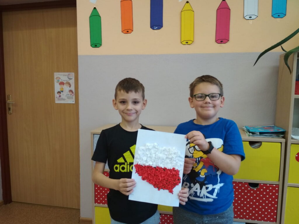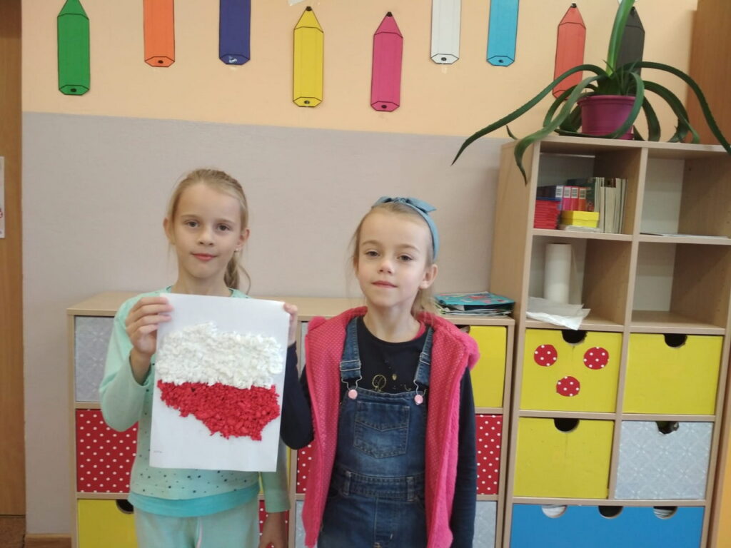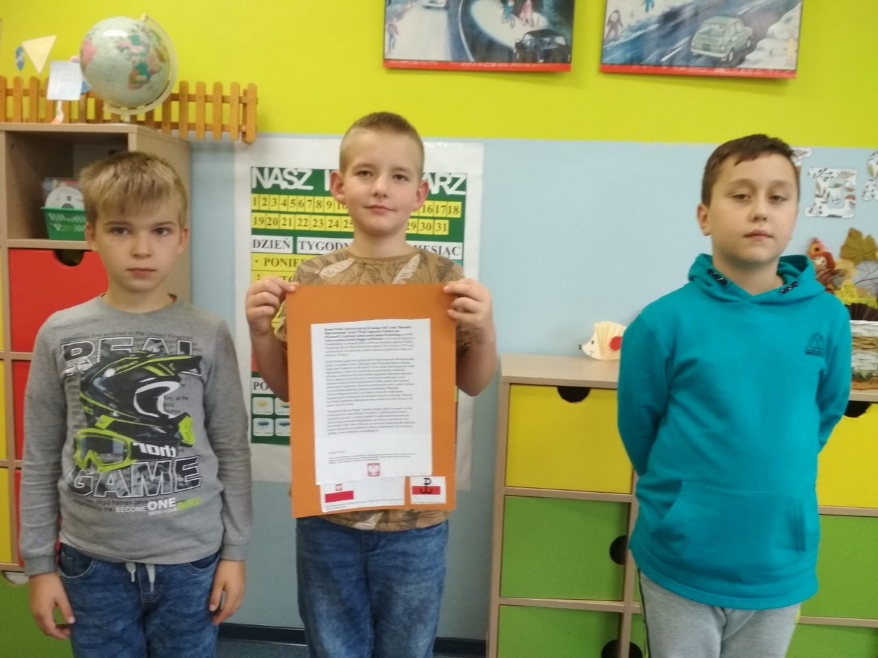 Święto Odzyskania Niepodległości wspominane było przez uczniów klas I-III od kilku tygodni. Wszyscy uczniowie doskonale znają i oddają szacunek  polskim symbolom narodowym. Potrafią zaśpiewać i znają historię HYMNU PAŃSTWOWEGO. Rozpoznają  BARWY NARODOWE i wiedzą co oznaczają. Poznali legendę ORŁA BIAŁEGO- symbolizującego nasze godło. Odnajdują na mapie  Wisłę, Bałtyk, polskie góry oraz największe miasta. Rozpoznają i nazywają zabytki Warszawy, Krakowa i Gniezna. Wiedzą kim był Józef Piłsudzki i jak świętowano Odzyskanie Niepodległości w tamtych czasach oraz włączają się w świętowanie 11 listopada w tym roku w swoich domach.