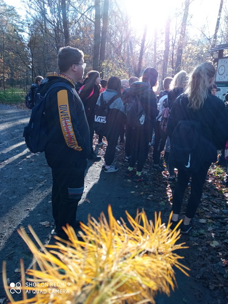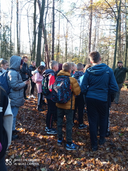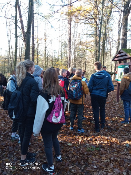 Ponieważ zwiedzanie rezerwatu przypadło w przeddzień Święta Niepodległości, postanowiliśmy wziąć udział w akcji patriotycznej „Niepodległa do hymnu” i wspólnie z nauczycielami oraz pracownikami Nadleśnictwa odśpiewaliśmy hymn państwowy.