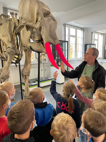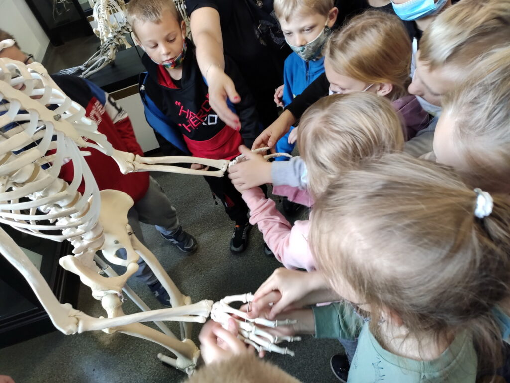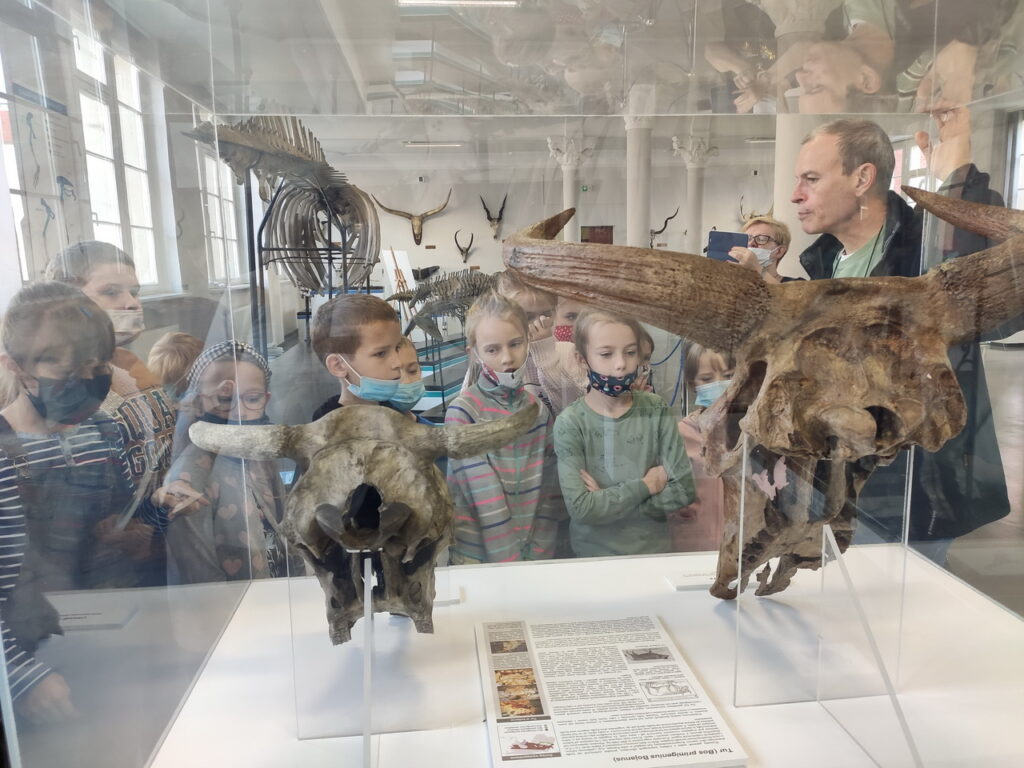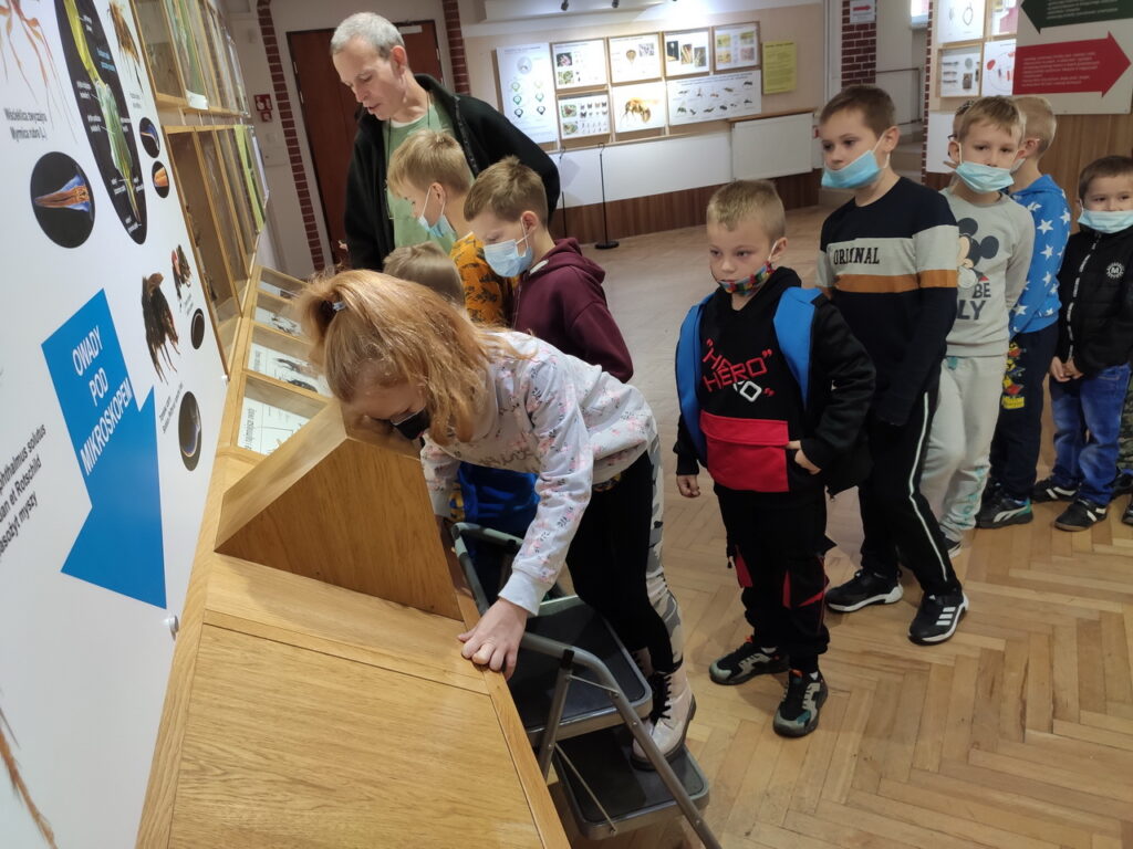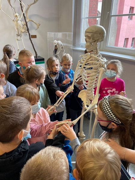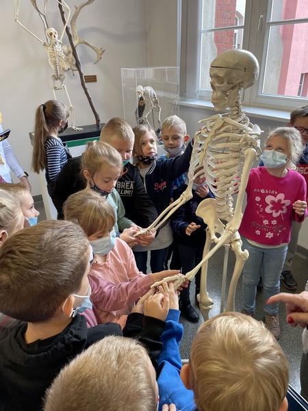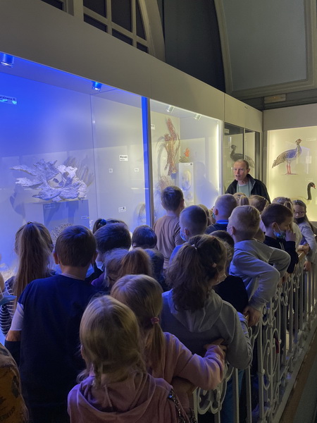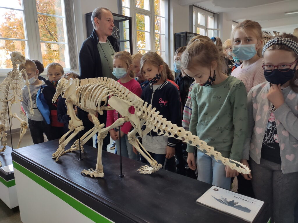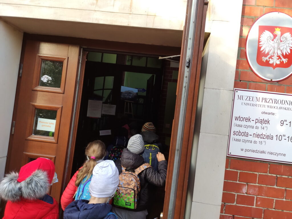 Pierwszym punktem wyprawy było Muzeum Przyrodnicze Uniwersytetu Wrocławskiego. Tam uczniowie z zainteresowaniem wysłuchali przewodnika, obejrzeli wystawy: ,,Świat zwierząt”, ,,Owady i człowiek”, ,,Świat roślin”, ,,Układ kostny kręgowców” oraz eksponaty zwierząt już wymarłych. Ponadto można było przyjrzeć się z bliska szkieletom: płetwala błękitnego, jelenia olbrzymiego oraz czaszce tura.