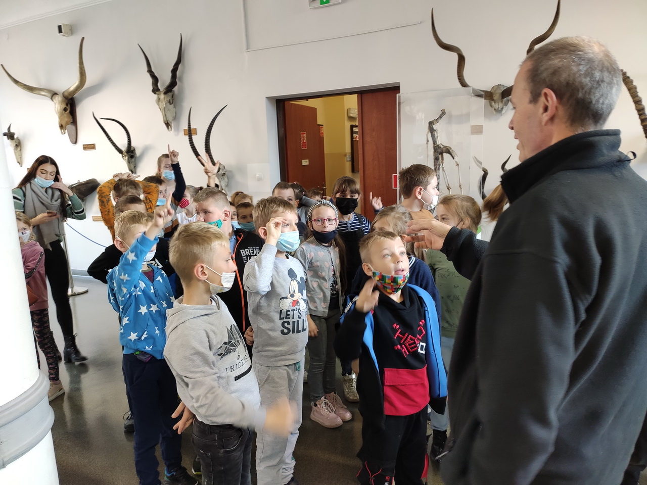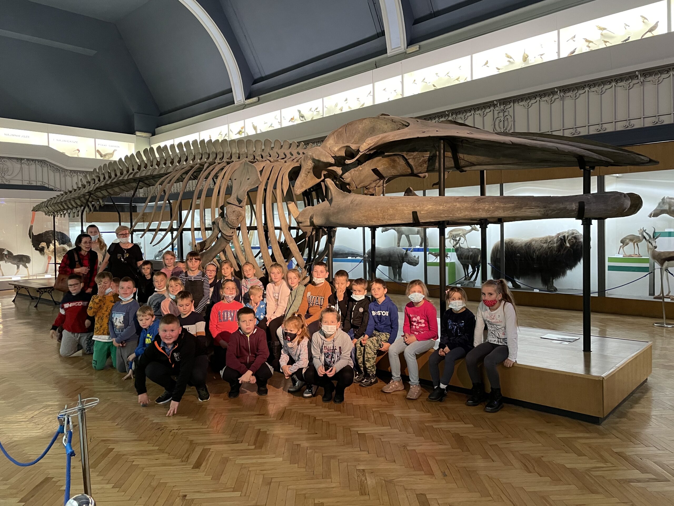 Pierwszym punktem wyprawy było Muzeum Przyrodnicze Uniwersytetu Wrocławskiego. Tam uczniowie z zainteresowaniem wysłuchali przewodnika, obejrzeli wystawy: ,,Świat zwierząt”, ,,Owady i człowiek”, ,,Świat roślin”, ,,Układ kostny kręgowców” oraz eksponaty zwierząt już wymarłych. Ponadto można było przyjrzeć się z bliska szkieletom: płetwala błękitnego, jelenia olbrzymiego oraz czaszce tura.