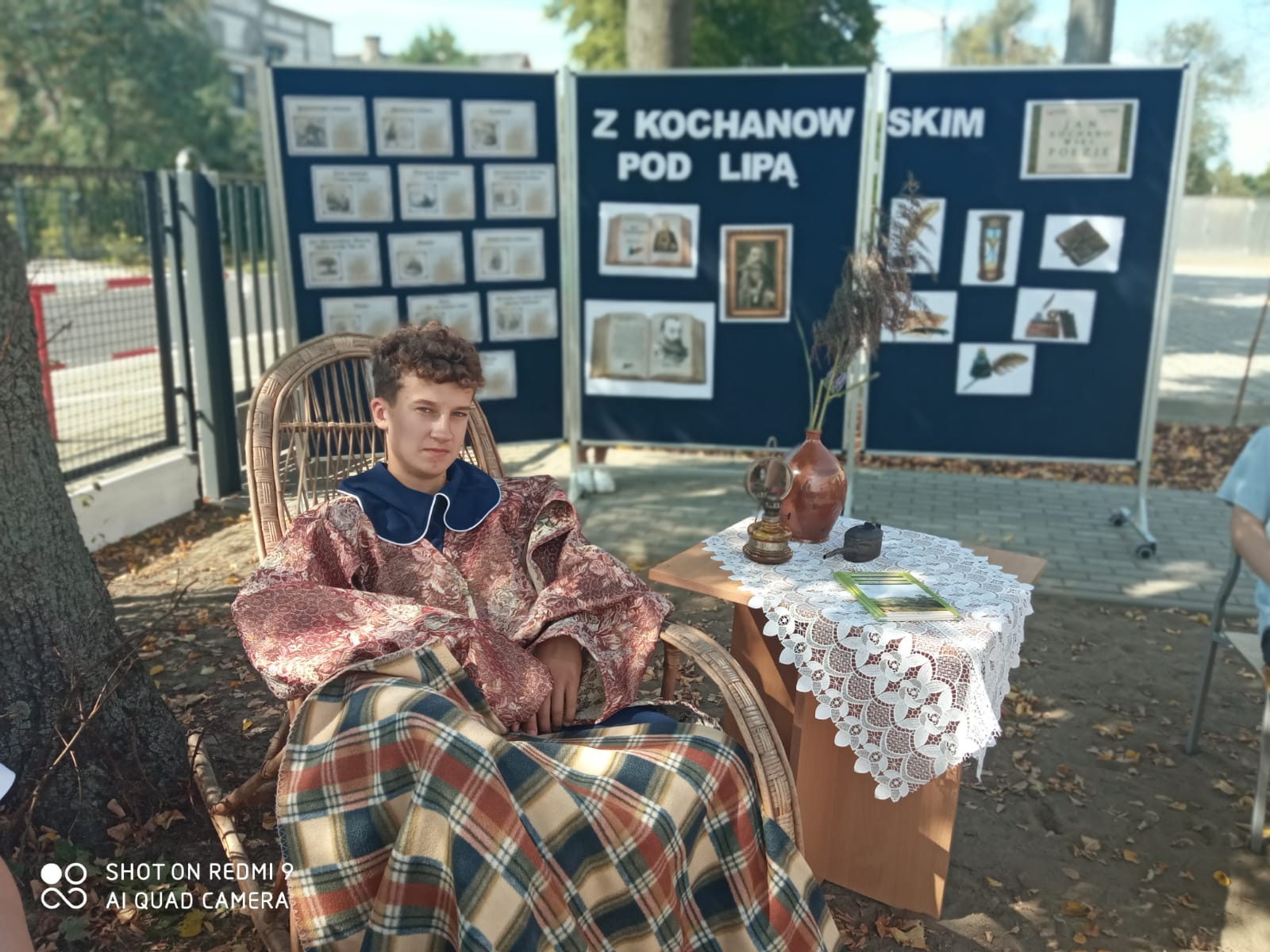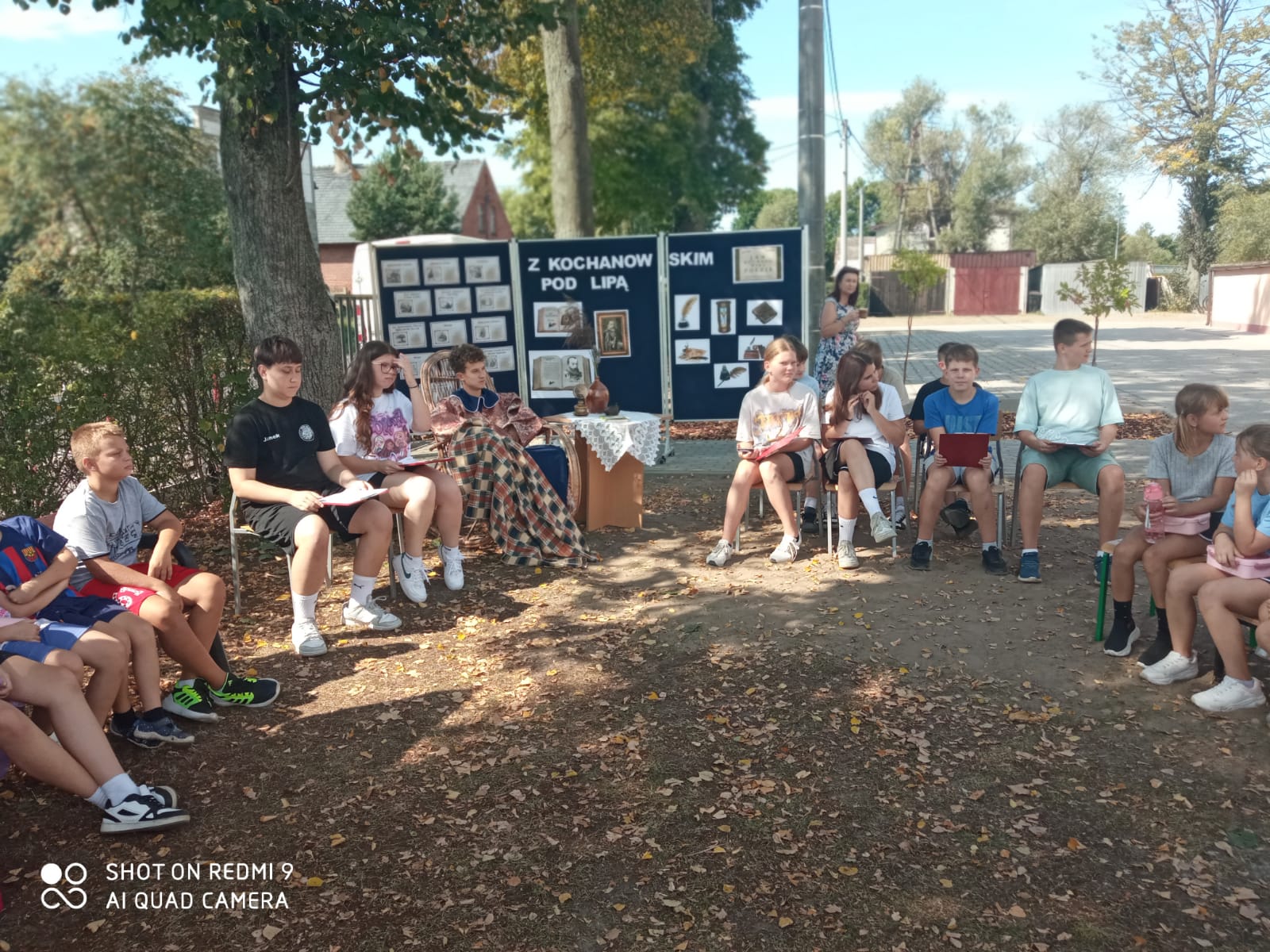 W piękny dzień uczniowie klas VII i VIII naszej szkoły przenieśli się w czasy renesansu, by wspólnie, na nowo odkrywać twórczość Jana Kochanowskiego. Na szkolnym placu, tuż pod lipą, odbyło się wyjątkowe spotkanie z literaturą, podczas którego uczniowie czytali na głos fraszki i treny największego polskiego poety epoki odrodzenia.