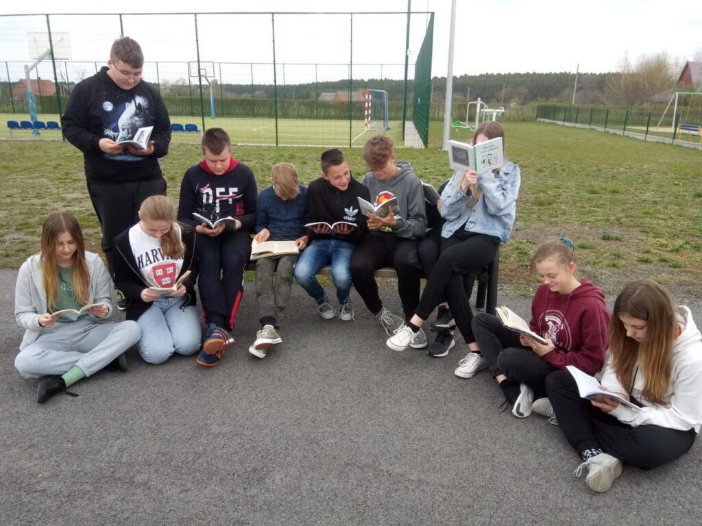 Do ciekawych akcji fotograficzno-czytelniczych włączyli się także uczniowie naszej szkoły, którzy pokazali, że czytanie to świetna zabawa. Czytać można wszędzie: na drzewie, w ogrodzie, w wozie strażackim, na plaży, na koniu, na orliku, w grupie albo samotnie. Nadesłane zdjęcia wspaniale ukazują, że czytanie może zdarzać się przy bardzo różnych okazjach, w bardzo różnych formach i że jest to coś wartościowego. Książka bowiem jest oknem na świat, dostarcza nam wielu wrażeń, uczy, wzrusza, śmieszy i bawi. Kilka osób nawet „Ubrało się w Książkę”, czyli sfotografowało okładkę wraz z twarzą lub sylwetką tak, aby stanowiły spójną całość.