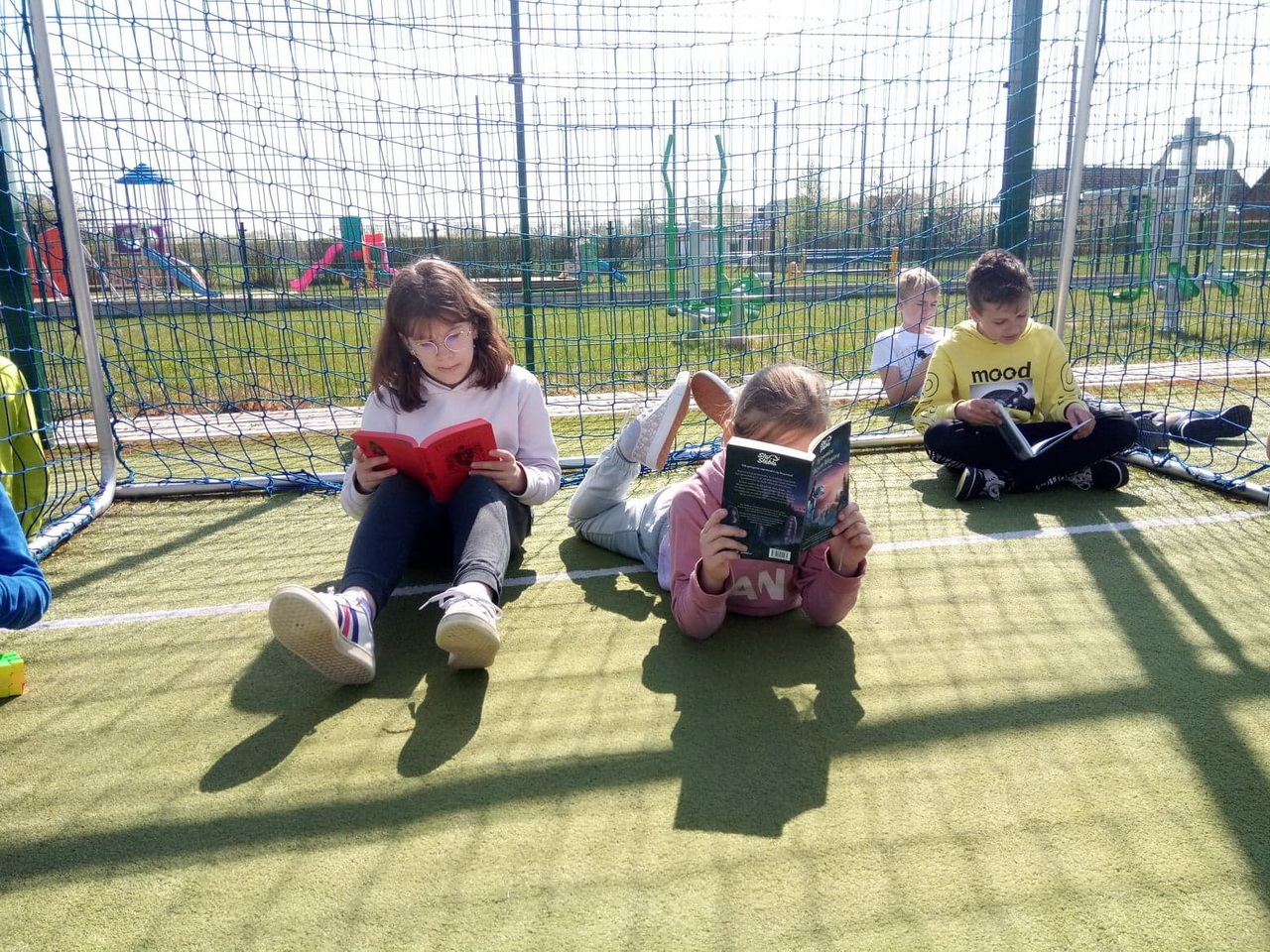 Do ciekawych akcji fotograficzno-czytelniczych włączyli się także uczniowie naszej szkoły, którzy pokazali, że czytanie to świetna zabawa. Czytać można wszędzie: na drzewie, w ogrodzie, w wozie strażackim, na plaży, na koniu, na orliku, w grupie albo samotnie. Nadesłane zdjęcia wspaniale ukazują, że czytanie może zdarzać się przy bardzo różnych okazjach, w bardzo różnych formach i że jest to coś wartościowego. Książka bowiem jest oknem na świat, dostarcza nam wielu wrażeń, uczy, wzrusza, śmieszy i bawi. Kilka osób nawet „Ubrało się w Książkę”, czyli sfotografowało okładkę wraz z twarzą lub sylwetką tak, aby stanowiły spójną całość.