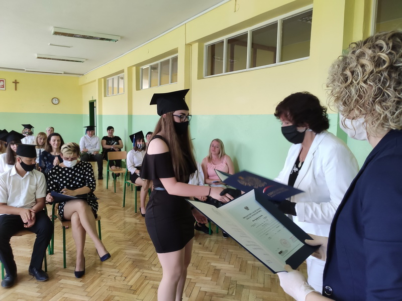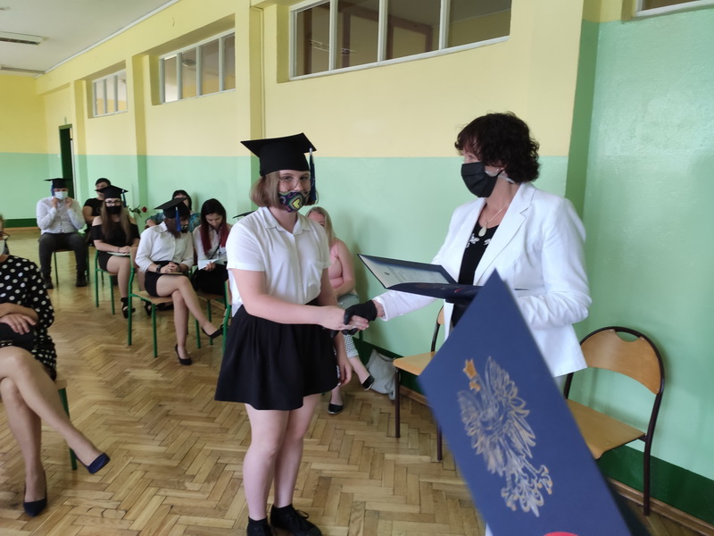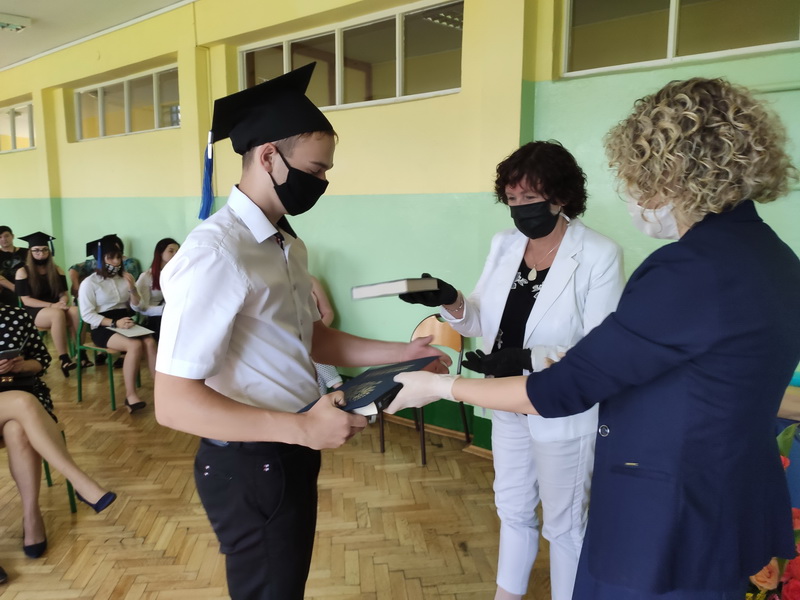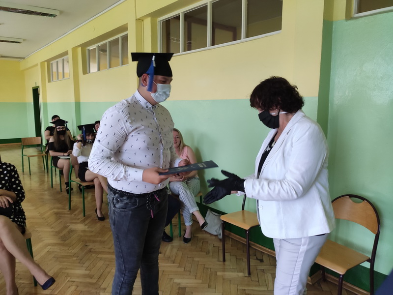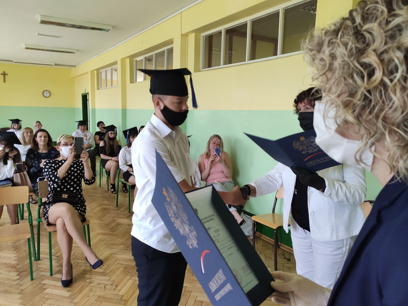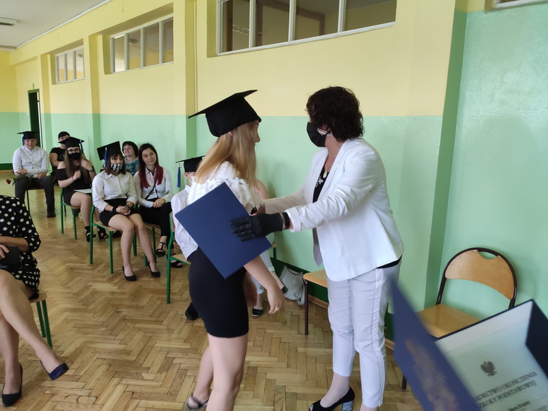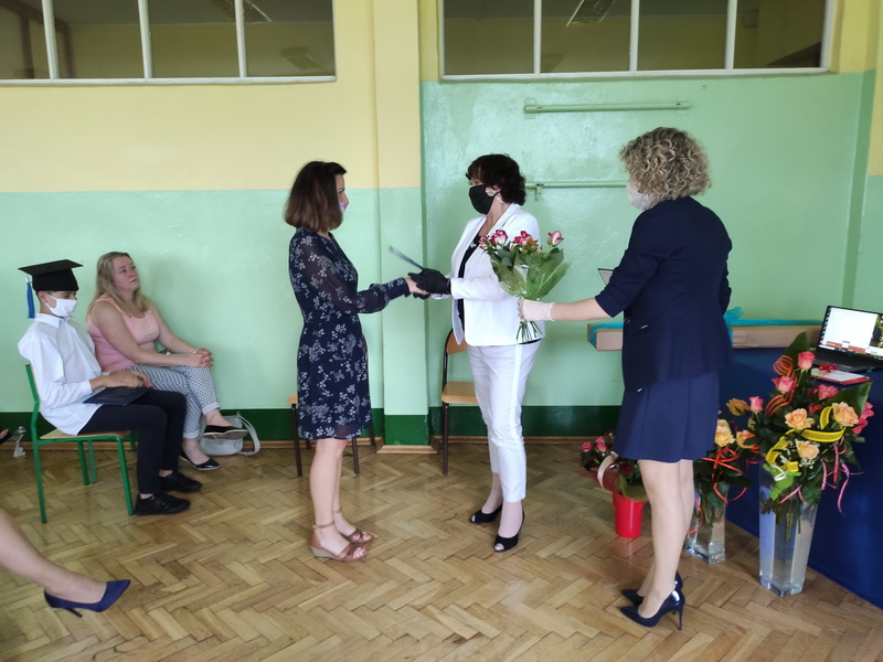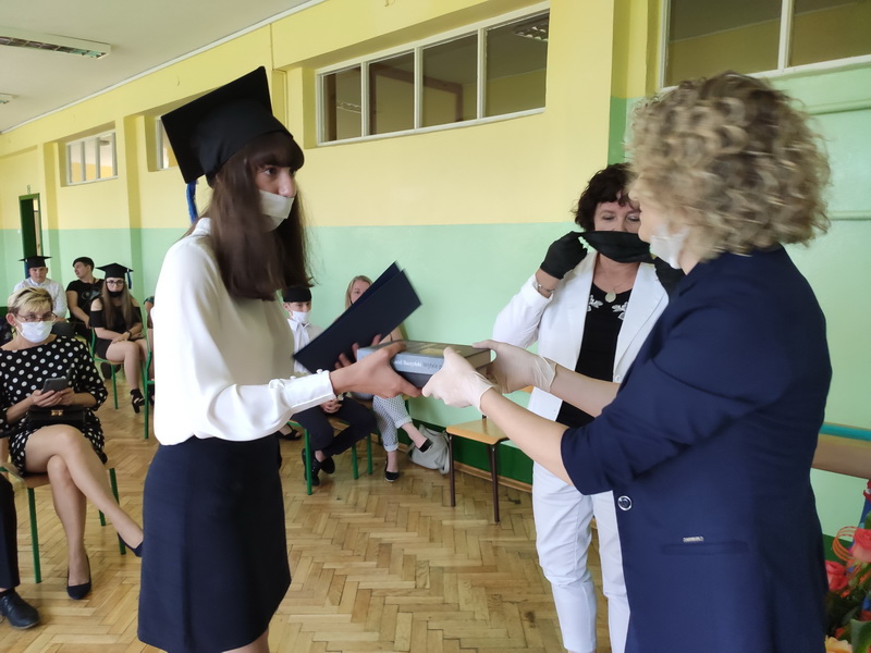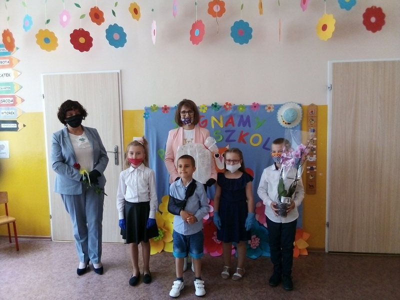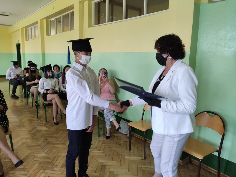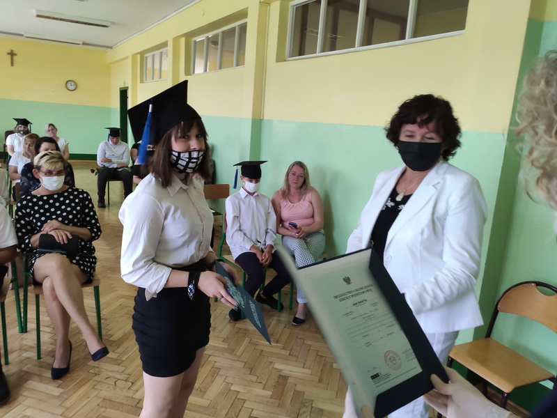 Zakończenie roku szkolnego 2019/2020 przebiegało w nietypowy sposób. W związku z panującą epidemią Covid 19 wręczenie świadectw uczniom klas I-VII odbyło się o wyznaczonych godzinach z zachowaniem odległości, w maseczkach. Podczas spotkań wychowawcy podsumowali wyniki w nauce – wręczyli świadectwa, nagrody oraz przypomnieli uczniom o zasadach bezpieczeństwa podczas wakacji. Skromną uroczystością w szkole pożegnano uczniów klasy VIII.